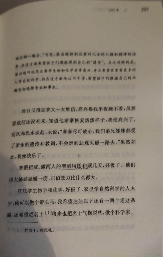 我们今天如果能够从梁启超的家庭教育中,学习到这一种人格模范的力量。一定能够和孩子的相处中,做到有所根据,能够和孩子融洽相处。与我读的其他家书中琐碎的事情很多不同,这是一本非常有水平的教养示范。我们也由此可以知道,为什么梁启超可以做到一门三院士,九子皆才俊。 本作品未经作者许可不得转载,转载请征求作者意见。擅自转载使用,将保留追究其法律责任的权利! 个性签名
