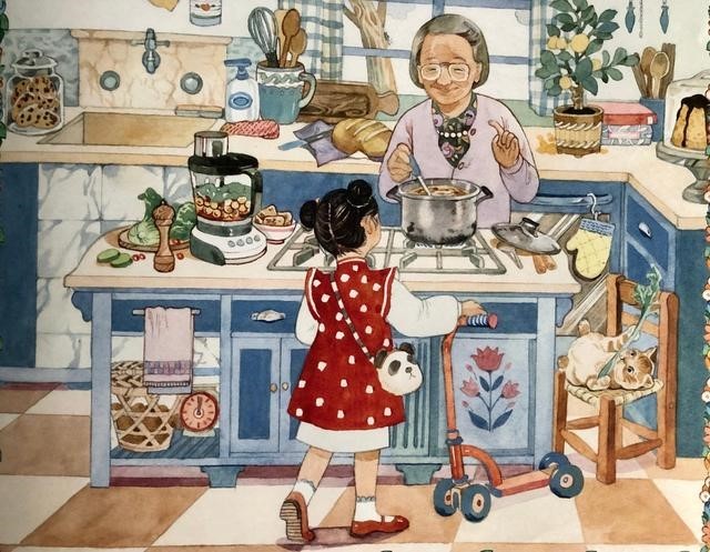 书 名 :《汤里的秘密》 品 牌 名 :小竹马童书拿到这本《汤里的秘密》,一眼就爱上了她!书本上那个可爱的小姑娘沉浸在她面前的那碗汤里,香菇、番茄、青菜、小葱……多么丰富美味的一碗汤,真的是让人垂涎欲滴!此时此刻,这碗美味的汤,就是小姑娘的全世界! 曾经以为,一碗汤就是一碗汤,多么普通,水里加上一些食材,煮煮不就有了么?读完这本《汤里的秘密》,你会发现,一碗汤不只是一碗汤,汤里有来自世界各地的食材,还有煮汤人的倾情付出。一汤一世界,里边有美味的食材,也有浓浓的爱意。 每一样美味,都需要上好的食材,用心用时间来慢慢烹制,美味的汤亦是如此。 外婆熬了一锅香喷喷的汤,孙女问锅里有什么,外婆说:有种子、有园丁、有泥土和雨露、有太阳、月亮、星星.....汤里的每一种食材,都起源于一粒小小的种子,在辛勤的园丁的精心呵护下,在太阳、月亮、星星的照耀下,在雨露的滋润下,经历了风风雨雨,种子发芽、长大、成熟,再从庄稼地里,经过运输来到了城镇市场出售,奶奶将它们买回家,经过择洗,熬煮,美味的汤出锅啦! 一粒子种子到一锅汤,经历了春种、夏长、秋收、冬藏,一粒种子长成一株可以成熟的食物,在这个过程中,园丁顶着星星出门,冒着炎炎烈日耕种,披着月光回家。一株食物要成为做汤的一种食材,经历了运输、销售、购买,在这个过程中,在我们还在梦乡时,农产品已经装载在货车上奔跑在乡村到城市的路上,天上还挂着星星的凌晨,菜市场已经是灯火通明,摊主已经把新鲜的蔬菜摆上了货摊,等着人们来购买。一种食材要做成一锅汤,经历了精挑细选、择洗准备、熬煮调味,在这个过程中,烹调的家人在厨房忙碌,端出来的是一碗汤,汤里却盛着全世界,盛着浓浓的爱意。 这就是汤里的秘密,在汤里,包含着人、自然、产业链和全球化,在汤里,包含阴晴圆缺, 人情冷暖,这一切,需要你用心来体会和发现。 一汤一世界,《汤里的秘密》通过色彩斑斓的画面呈现外婆家的厨房、忙碌的乡村田野、熙熙攘攘的城市,给孩子们展示了一个世界的纷繁和热闹,让孩子去体会生活的美好和幸福,了解人生智慧和道理。非常棒的一本好书,值得我们一读再读。