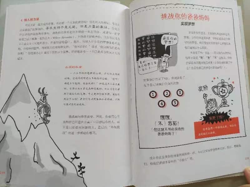 《儿童情绪管理》这本书,图文结合,幽默风趣。书中有大量的高效心里互动练习,帮助我们或者是孩子掌握15个掌控情绪的超能力,让我们学会更好的处理不愉快的经历、提高专注力和社交技能,从而更加自信,更能掌控自己的情绪,还能全面提升孩子的情商和逆商,在现在高压环境下为孩子真正打好心理健康的基础。 本书通过想象力、注意力、习惯、想法、诚实、情绪、愤怒、恐惧、悲伤、快乐、抵触、羞耻、分心、友好、行动力15个方面入手,教给你认识自己的情绪,教给你多种练习的方法,教你怎样更好的更快的处理自己的情绪,通过不断的去运用这些小练习,在你下次遇到同样问题的时候你就可以做你情绪的主人。 ![]() ![]() 书中把这些能力都比作超能力,是不是很有趣,学会一个我们就是一个有超能力的超人啦!还是我从我自己分析,以前的我只要是一遇到内心无法接受的事情我就会去找人哭诉,哭诉只能让当时的情绪发泄而已,下次再次遇到同样的情绪问题还是重蹈覆辙。后来慢慢的我就开始自己内化,其实也不全是内化,我就是睡一觉就好多了,也不去处理我这些情绪,这样也有不好处,就是下次爆发的更严重。 ![]() ![]() 有天面对两个孩子要打卡,都在一起写还一边打闹,我真是拖着疲惫的身体在看了一个又说另一个,而孩子爸爸却躺在沙发上跟我说好累,当时真是又愤怒,又无奈,又崩溃。心情丧到心口发闷,我想起我看的这本书中的情绪跟快乐这两章,我先走到一边深呼吸,告诉我即使我发怒也无济于事,只会让事情更糟,先快点让孩子搞完作业,洗澡上床是现在要做的事,不要搞出很多没有必要的事情来。情绪就好多了,躺着床上的时候就在运用快乐一章的一句话“真是烦死了,但是……”但是我不用上班,可以管上孩子,孩子少受多少罪,孩子爸爸也是因为身体不好才累的,平时也是不出去玩,在家有帮忙做事情的,这样想来心里真的平静好受多了。 ![]() 这本书不到对于孩子还是大人来说,都是很实用的,是真的可以帮到你的,让我们一起慢慢的掌控自己的情绪吧! 本作品未经作者许可不得转载,转载请征求作者意见。擅自转载使用,将保留追究其法律责任的权利! 个性签名