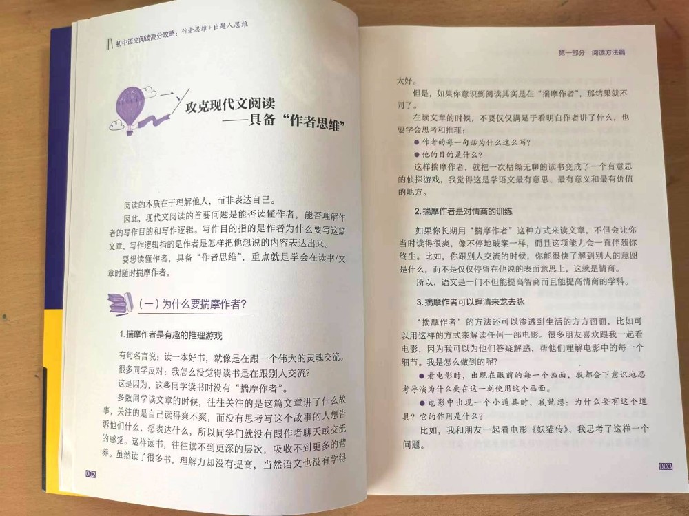 《初中语文阅读高分攻略》本书的作者——邵鑫老师,曾深耕阅读教育多年,阅读系列课程火爆全网。获得山东卫视《超级语文课》2022*受欢迎语文老师。致力于帮助青少年爱上读书,倡导全民阅读经典。看来还是老师懂老师,老师懂学生。这本书里提到的两个观点非常新颖,非常实用,阅读就是体验作品里的人生,阅读理解题的本质在于理解文章作者和出题人。于是引出两个名称,作者思维+出题人思维。
