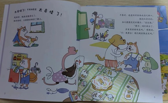 我们试读的是《边长大边懂钱:好孩子学花钱》之《手机里有用不完的钱?》和《旅行需要花钱吗?》两册。绘本故事里的慢慢、花花、金毛、奔奔,拥有自己的想法,在旅行和手机这两项技能中,充分运用自己的聪明才智,来化解手机和旅行中遇到的的小麻烦,用实际经验来告诉孩子们,如何使用金钱来读解这些小麻烦。