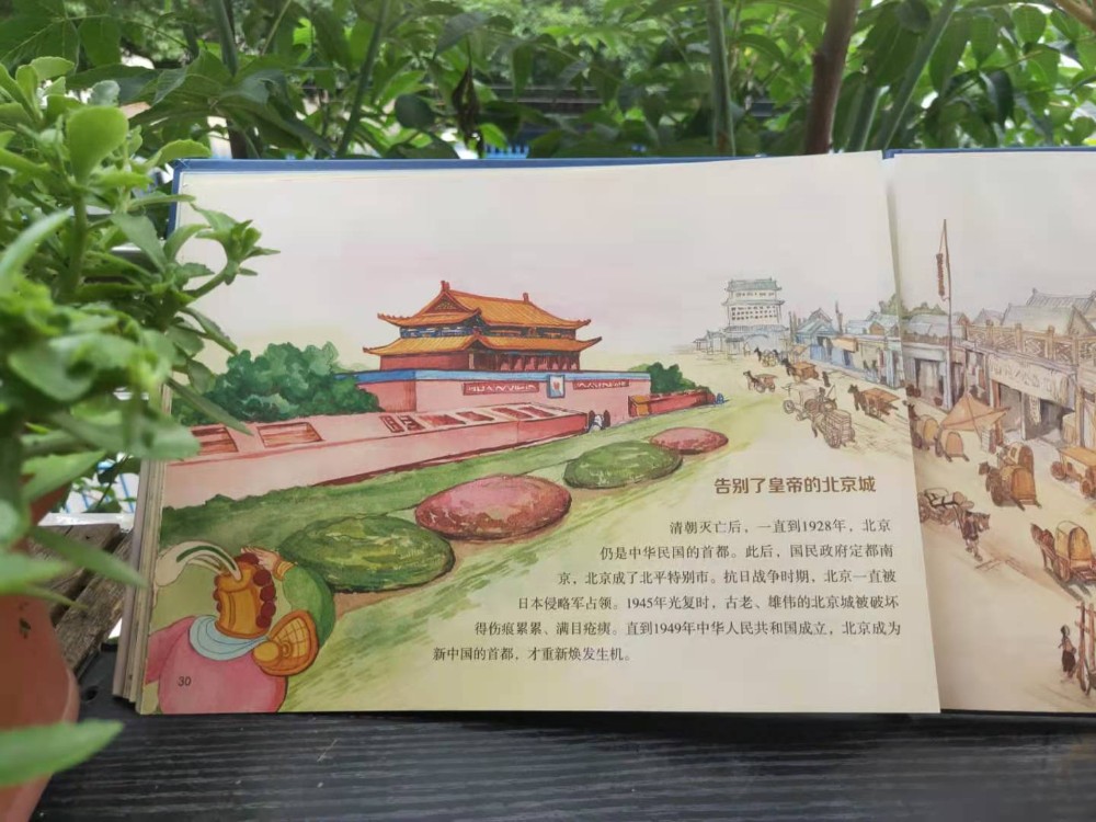 《中轴线上的北京》这套绘本一共有三本,按照内容分别分为都城、老字号和胡同,其中我和孩子有幸阅读了其中一本《中轴线上的北京:都城》,其根据历史脉络讲述了北京作为都城的前世今生,让孩子们看到了一个气度非凡的北京城。