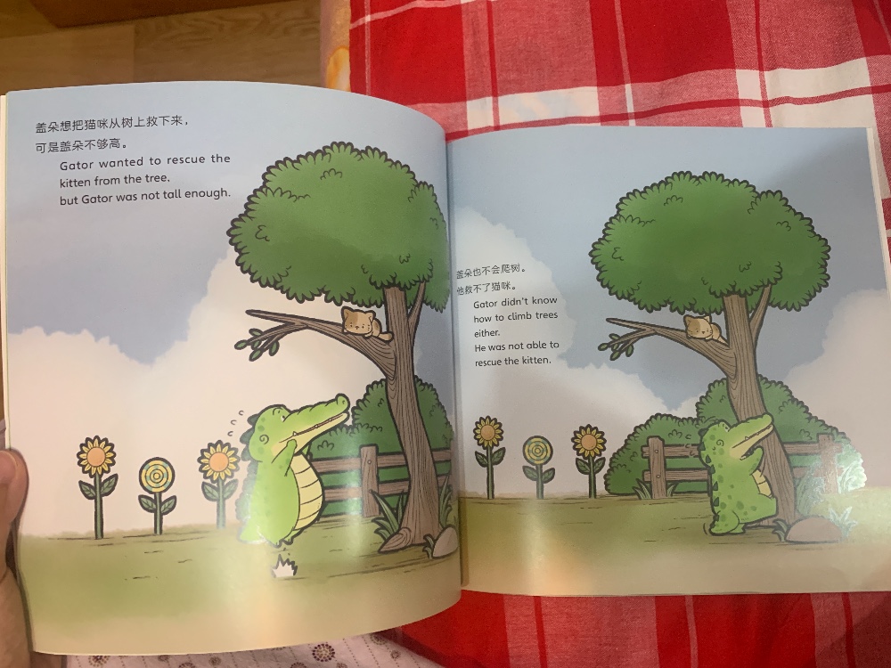 很开心得到机会又来体验新书,这次得到的是《盖朵和她的好朋友们》。《盖朵和他的好朋友们》中英双语点读版,小鳄鱼盖朵系列绘本系列全6册:《一起拍照》《我的十个好朋友》《猫咪在树上》《树上的苹果》《雨伞》《我的球不见了》!欢迎来到小鳄鱼盖朵的儿童世界! 这是一套关于盖朵和好朋友们的绘本故事集,以“友谊”为切入点,通过一个个或温馨、或可爱、或搞笑的创意小故事,作者希望用画笔为小朋友的成长带来正能量和美好的回忆(珍惜友谊、开动脑筋、尊重差异、互帮互助、学会分享、注意安全、好奇探索、开心快乐、温暖善意、环保意识等),借此让小朋友忘记烦恼,开心成长,并拥有一颗善良的心。