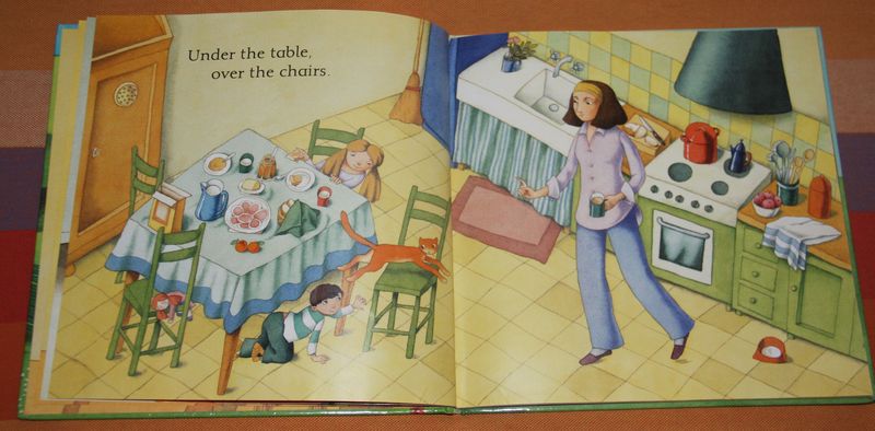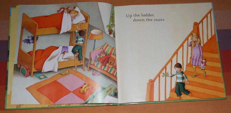 Up the ladder, down the stairs. 荃对这个上下层的床比较感兴趣,还要妈妈生个小弟弟,然后她当姐姐睡在上层,小弟弟睡下层——呵呵,床易得,弟弟难养啊。 Under the table, over the chairs.