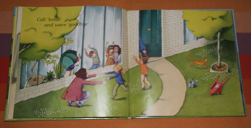 Call “hello”, and wave “goodbye”.