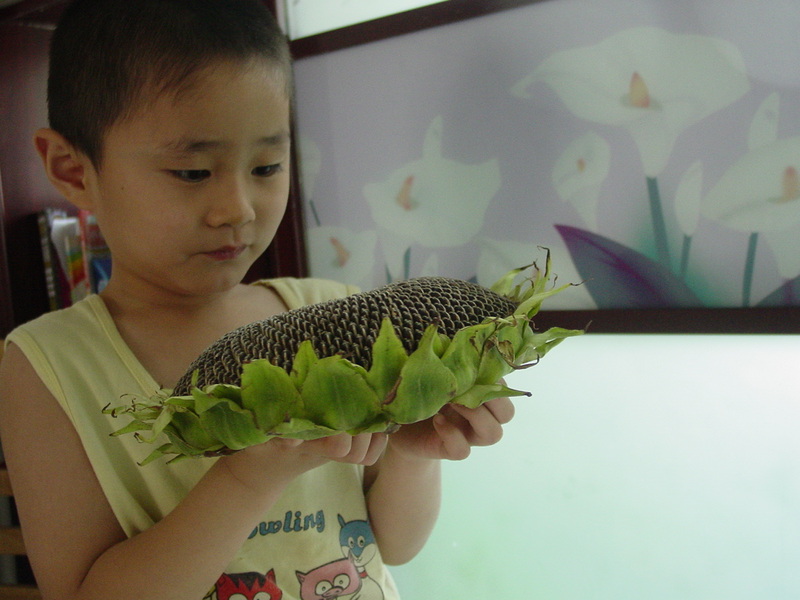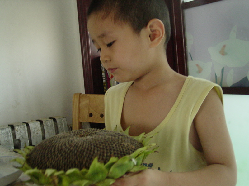 昨天去逛早市,天,竟然发现有向日葵卖哦,3元钱一个,我5元买了两个!人家就只剩下3个,被我买了两个,后来的人就没得买了,说明天再早早来!哈哈!幸运哦! 一直喜欢吃瓜子儿,就是担心炒熟的瓜子里面含有太多的香料,现在好了,这个可是最最天然的哦!刚刚成熟的,要开一颗竟然还有一股大自然的乳香!哈哈!真是美味! 回到家,宝贝还没有起床,我就想着给他一个惊喜!果然不出我的所料,宝贝一看到向日葵,就大喊:“嘛嘛,你那里来的这个东西啊,真好玩啊!”说着就开始看上面排列的整整齐齐的,各种有趣花纹的向日葵!“当然是买的了!漂亮吧!你知道它叫什么名字吗?”我问宝贝!“当然了,向日葵嘛,我等会儿给你画漂亮的花儿,我最喜欢黄色的向日葵花儿了,但是这个是果实,不过果实也不错哦!上面的瓜子儿也很漂亮!”宝贝一阵兴奋! 好好的观察哦,找出规律来,才能够画出漂亮的向日葵呢! 等会儿嘛嘛就要把他吃掉了,你可要干劲儿记到脑袋里面,把它画到纸张上去!哈哈!一个向日葵,让母子俩高兴了一个早上,真是最美的向日葵! 这个夏天,经常早起,去逛逛早市,竟然还有更多的惊喜哦!看来真是早起的鸟儿有虫吃哦!明天我还要早早起床去寻觅一下哦!期待有更多的惊喜出现! 本作品未经作者许可不得转载,转载请征求作者意见。擅自转载使用,将保留追究其法律责任的权利!