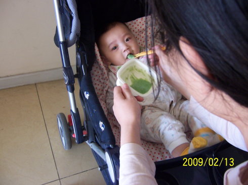 半岁的她,正半躺在推车里享受美食呢,美食就是我给添加了菠菜泥的米粉 贝贝慢慢的长大,七个多月时,会扶着东西站了,带她下楼的时候,她在这辆宽大的推车里,站起来,转圈,搞的我们一惊一吓的,生怕她从里面掉出来。于是,赶紧入手买了第二辆车——轻便的伞车。当时家里还没有买车,带她去远处都得乘坐公交车或者地铁,于是选的时候挑选了很轻的,只有八斤,带着这辆车去过公园、游乐园、动物园等,她在里面坐或者躺,都是很舒适的。这辆车一直用到三岁多,去超市她懒得走,就推着她,依旧很享受的。