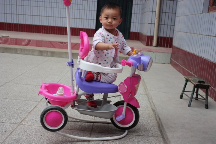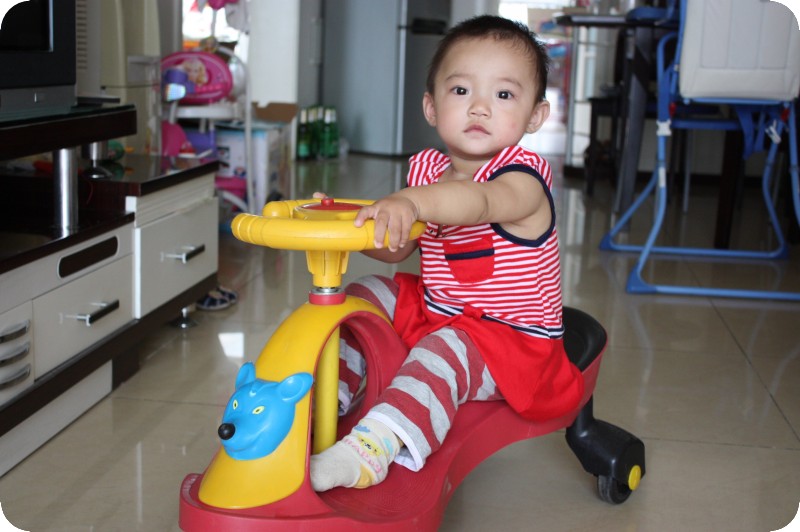 睡着啦 九个月,回到老家,爷爷奶奶给她买了第三辆车——三轮车,还带有摇椅功能。那个年纪正是特别不安分又不知道天高地厚的时间,也不知道危险,坐在三轮车里的她四周的转,一会朝前坐一会朝后坐一会又侧着了,开心极了。 一岁的时候,给她入手了第四辆车——扭扭车。本来没想那么早买,碰上小区里搞跳蚤市场,有个邻居家里两辆扭扭车,就出售一辆,因为价格很便宜,而且车的质量很好,就想着买来先囤着,怎么也得一岁半才会骑吧。但小孩子的潜力真的很巨大,一岁的她也能扭几下呢,就是力气太小,方向也控制不好,等到一岁半,就骑的比较溜了。但扭扭车相对于后面两辆车来说,使用频率不高。前些日子她主动要求骑扭扭车,赶紧给她拿下来,晚饭后和好朋友一起骑着玩。