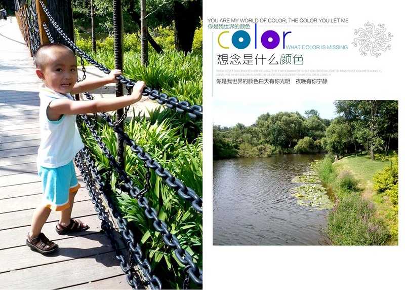 ![]() 夏日的森林逸城,谦谦来咯! 森林逸城,一个美丽的大森林,里面的树郁郁葱葱,枝繁叶茂,炎热的夏天是一个可以乘凉的好地方,凉爽的秋天,满地的落叶别有一番滋味,冬天的萧条正在孕育着生机的春天。森林逸城的美不仅仅是因为他的绿还有他的五颜六色,尤其是盛夏各种花朵竞相开放的时候更为林中增色不少。有树的地方自然少不了水了,这里有一个超级大的池塘,里面养了好多的鱼还有鸭子呢,这池塘的旁边就是一个高级的会所,曾经想和老公在结婚周年的时候来此浪漫一下,后来打听下有最低消费也是很高的,觉得不值得了!林子里还有吊桥呢,谦谦特别喜欢从桥头跑到桥尾,还喜欢在桥的中间摇摇,感受吊桥的摆动。吊桥下面的水里偶尔还会有莲花盛开,站在桥上向远处望去,就可以看到一望无垠的大海了,从森林逸城后门走出去就可以直接来到海边,这真是个绝美的好地方啊,此逸城是附近楼房的配套休闲场所,很是羡慕能住在这里的人啊,随时都可以来这里休闲娱乐。而我们一般只能在周末的时候开车来这里,这里距离我们居住的地方还是挺远的.....