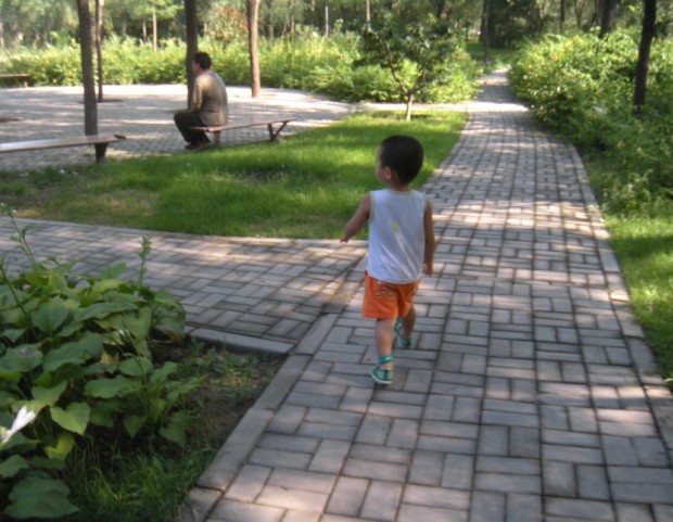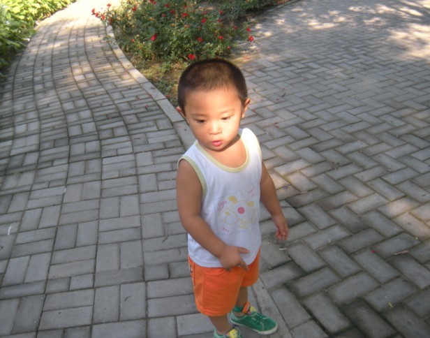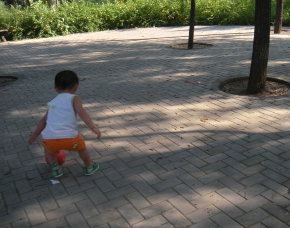 果然不出所料,他们从大广场走向小广场 秃秃走路总是喜欢东张西望的 跟他一块走,老得替他揪着心! 感觉随时都有可能撞到前面的障碍物似的……