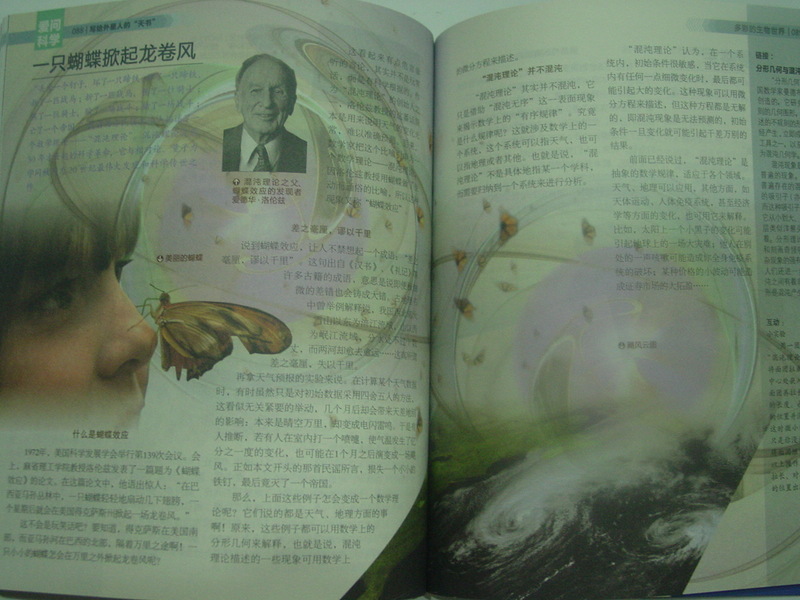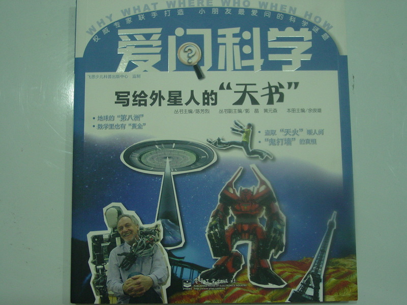 《爱问科学——写给外星人的“天书”》,这本书是电子工业出版社出版的《爱问科学》一套6本书中的一本!仔细阅读这本书,内容真是特别的丰富啊!书中包括玄妙的科技,神秘的大地,迷人的太空,多彩的生物世界,好玩的数学,快乐的时尚,奇妙的人体,七个章节!每个章节的话题都是特别的吸引孩子!特别是男孩子对这本书真是爱不释手!因为里面都是他们想知道的,感兴趣的话题! 这套书的主编是陈芳烈老师,他是编审,科普作家!所以对于儿童的科普书还是很有权威性的!而这本书的主编余俊雄老师是《我们爱科学》杂志的主编!中国少年儿童出版社的编审,中国科普作家协会常务理事。少儿科普专业委员会主任,北京玩具协会常务理事!益智玩具委员会主任!写了《航空史话》《数独揭秘》!对于孩子们喜欢的科学话题很是了解!看到有这么多的科学人士关注少儿科普,想想之前我上学的时候,“科学”“生物”等等这些科目都被称为“副科”,连一个专业的老师都没有,每次考试都是抄书,抄书都不知道找那一页,现在的初中生也还是如此,只知道学习语数外!真是伤心,但是我相信只要我们有更多的人士关注孩子的科普知识,我们中国的这个现象一定会慢慢的改变的! 宝贝一看到书名就很感兴趣,“外星人,他们能看懂我们写的字吗?”宝贝问“所以我们药给他用另外一种语言来写哦!所以叫做天书!”我赶紧翻开这一页给他讲一讲着天书是怎么一回事儿!哇,原来这一节是在“好玩的数学”里面!书里讲到,不管是那个星球,他们都会知道:直角三角形斜边的平方等于两直边的平方和!这就是毕达哥拉斯定理!除此之外还有中国的商高,在毕达哥拉斯前600年夜发现了这个定理! 我们中国人称为哦这个定理为“勾股定理”相信所有有文明的星球都会懂得知道这个定理的! “丢了一个钉子,坏了一只铁蹄;坏了一只铁蹄,折了一批战马;折了一批战马,伤了一位骑士,伤了一位骑士,输了一场战争;输了一场战斗,亡了一个帝国。”这首西方的民谣,生动的描述了一个数学理论——“混沌理论”,而对于孩子们来说,,直接告诉他们这个是“连锁反应”他们应该更能很快的明白!这也是蝴蝶效应的阐述的最形象的比方!一只蝴蝶怎么就会掀起龙卷风呢!那么一个钉子都可以灭一个帝国,就是这个原因,中国有句成语“差之毫厘,谬以千里”也就是这个道理! “火车必须走火车线路,没有轨道,他们就走不成”这个道理连爱看托马斯的孩子们都知道!所以火车刚刚发明的时候!因为它本身的庞大,费水,外形不够美观,所以并不是很受欢迎的!但是铁路的出现,解决了这一切的问题!“火车”之所以成为“火车”是因为刚开始的时候,主要是用蒸汽来发动的,所以要不断的烧火!但是现在的火车已经发展到了无火的境地!火车已经成为了当代生活必不可少的交通工具! 本书中的69个科学话题,每一个话题都是这么的吸引孩子!虽然给宝贝讲解的时候,不一定能够完全明白,但是这并不影响孩子的兴趣!孩子依旧一遍一遍的看,一次一次的问!妈妈也子啊和孩子一起学习,一起研究者科学的奥妙! 本作品未经作者许可不得转载,转载请征求作者意见。擅自转载使用,将保留追究其法律责任的权利!