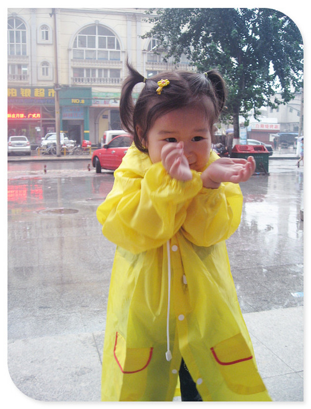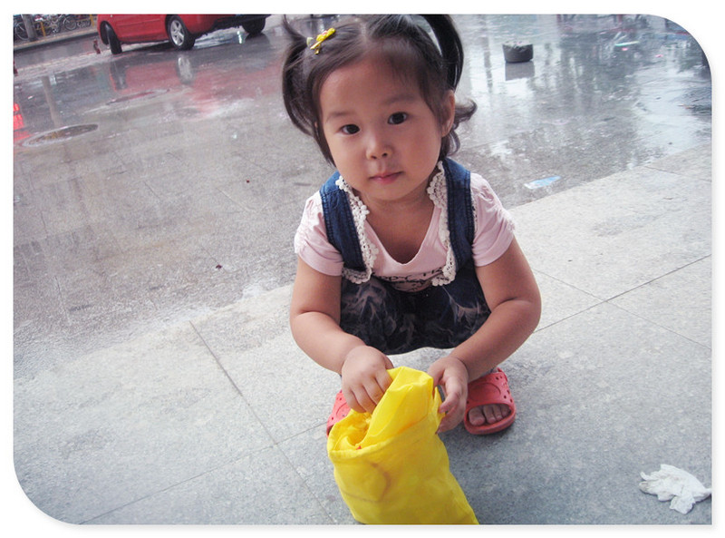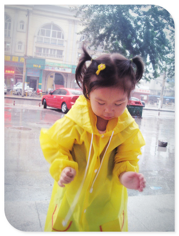 中午正吃着饭呢,忽然就没电了。原以为是我们涮锅把电线给烧了,后来一检查没事,那就是电卡没电了?正开门出去想看一下电表,结果看到邻居也在看电表,原来他家也没电了。看来不是一家的原因,是全都停电了啊。真是的,怎么下着个雨停电呀,这停电的日子可真不好过。 下午妞妞也不午睡,在屋里满门的串,到处翻腾,哎,家里一下又全乱套了。妞妞玩烦了,腻了,说要出去看下雨,软磨硬泡之下妈妈只好答应她的要求,走吧,咱们出去玩会儿去吧。想起去年还赠了一个宝宝雨衣,一起带上,和她一起看雨去喽~ 出了单元门才发现,外面那么多人啊。这一停电,大家都不知道该做什么了,于是就全都跑出来玩了。妞妞不管有多少人呢,她只想着去雨里玩,于是迫不及待的要穿上她的小鸭子雨衣,她要去找小雨滴玩呢~! 妞妞穿上这个黄色小鸭子的雨衣开心的不得了,“妈妈,妈妈!我们快点去雨里吧!”说着妞妞便拉着我的手去外面了,地面上有好多的积水,妞妞就用她的小脚丫“啪嗒啪嗒”的踩着,高兴的不的了。妞妞现在真的是“十万个为什么”,看到什么都要问问妈妈这是为什么?这个雨水怎么不往这里流呢?怎么它不住在管子里呢?它怎么不回家呢?……叽哩咕噜的一大堆问题,我是有些应付不了了。 这小雨朦朦的,在雨中走着真是舒服。不知道从哪里看过来着,说下雨的时候,带着宝宝去雨中,感受一下雨中的情景,体验一下雨落下的感觉,这对于孩子,是种特别的体验。今天,妞妞就有了这么一次特别的体验,做了一次漫步雨中的小精灵~! ![]() ![]() ![]() ![]() ![]() ![]() ![]() ![]() ![]() ![]() ![]()