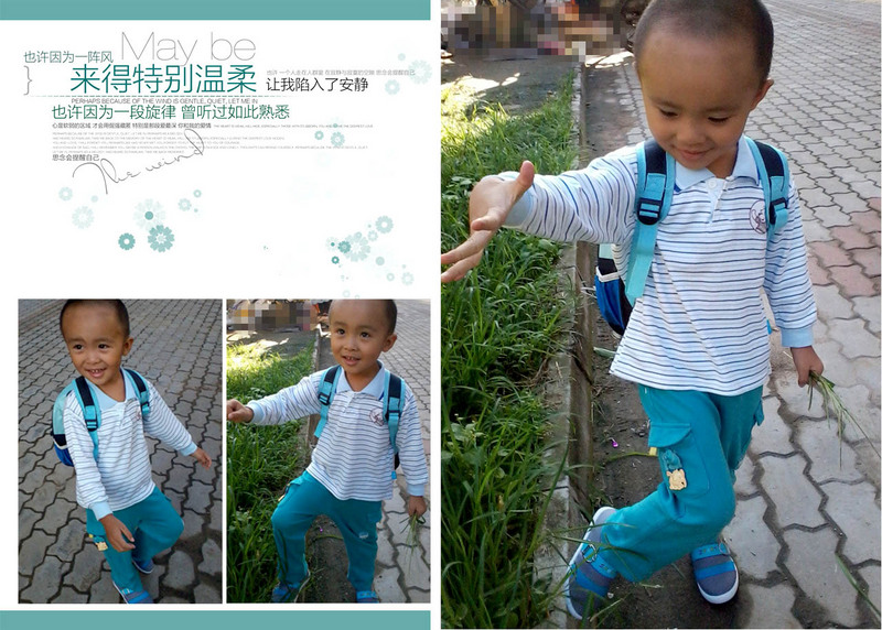 2012.9.5 谦谦入园第八天:模特没走成 早上谦谦还是喜欢懒会床,现在对爱探险的朵拉特别的感兴趣,每天要是不看一集就会闹腾。今天早上起床收拾完毕后还是要求看一集朵拉,看谦谦喜欢看这样的动画片妈妈是真开心啊,估计还是因为对英语感兴趣吧,这个朵拉倒是很适合谦谦的口味,只是以前的时候也给谦谦看过,小家伙却不喜欢看的,现在却到了着迷的程度了。看了朵拉后喝点蜂蜜水然后背着书包去学校了。每天谦谦几乎都是开开心心的去幼儿园,小家伙总是洋溢着快乐的笑脸......