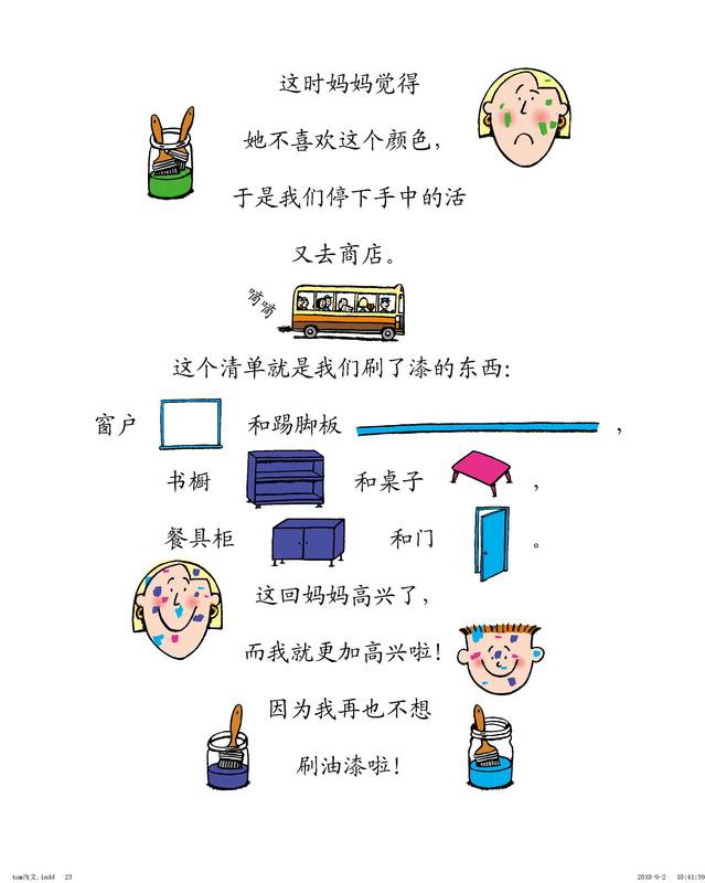 今天又再一次和亲们分享好书了,每次买到一些好书后,就想和亲们分享,一起让我们的宝宝受益。今天依然是推荐两本书啦,第一本是《汤姆和一罐麻烦》,绘本的图画很夸张,而且颜色很鲜艳,排版方式也很独特,大头像配着简短的中英文,很适合宝宝学习英语,我家宝宝就很喜欢这本书,每次阅读这本书的时候,我就会指着图案问我家宝宝这是什么,宝宝很快就能回答出来,而且也在这本书中学会了简短的英语口语,我觉得很不错,带孩子出去玩的时候,她还会时不时说出几句书上的英语,大家都夸她聪明,我听后很开心。所以今天也来和亲们分享这本好书啦~~附上几张图片吧,希望亲们也喜欢~~