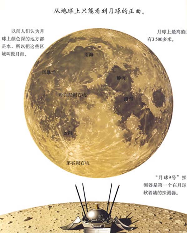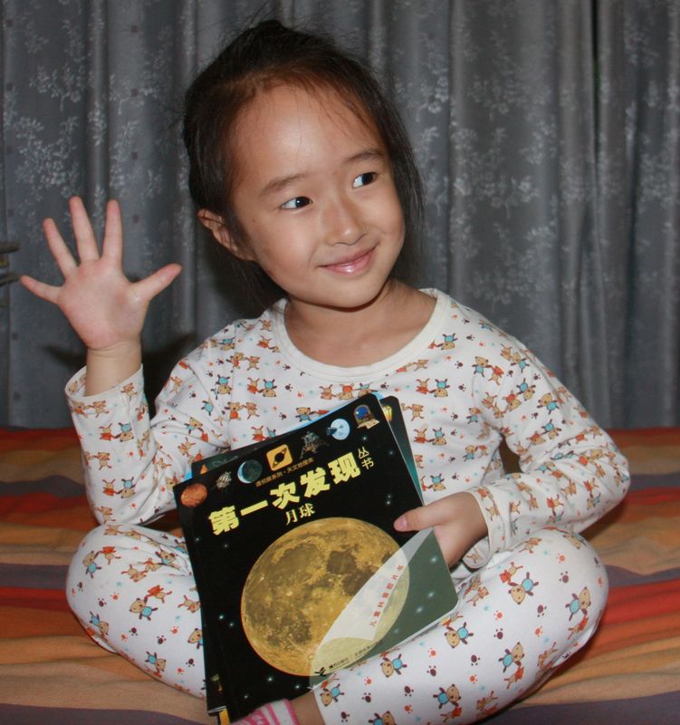前晚,从奶奶家接小荃回去,看到天上月亮,荃道:“怎么这么亮啊?”是晚,农历八月十一,夜空如洗。旁边遛弯的熟悉的爷爷问荃:“月亮里有什么呀?”荃很实诚的说不知道,爷爷说有小白兔,荃思忖一下说没有。“月亮里有什么呀,妈妈?”哈哈,问的正是时候,在宝宝地带用18000积分和20朵小红花换的五本《第一次发现丛书》今天取回了,都是透视眼系列的天文地理类,其中一本正是《月球》。“我们快回家去书上找找吧。”