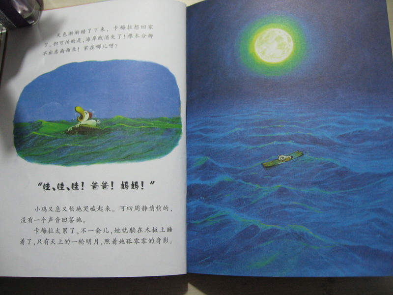 一天正好讲到《不一样的卡梅拉》中的《我想去看海》,儿子听得特别认真,我甚至以为他睡着了,低头看看他,儿子反问我:怎么啦?讲啊!我在听呢!卡梅拉的冒险经历实在引人入胜,并且故事还配上符合孩子心理的对白,让宝宝身临其境。 ![]() 当故事讲到卡梅拉在大海上玩,天黑了,卡梅拉渐渐远离了海岸线,一个人孤单地漂在大海上,她哭着叫爸爸、妈妈的时候,儿子忽然大哭起来。我连忙停下来安慰他,问他为什么哭,他说:不知道……我本想跳过这一页不讲了,可是儿子却执意让我继续讲下去。我说:那你别再哭了,你是不是为卡梅拉而哭呢?儿子点点头,接着用小手擦干眼泪,继续听我讲故事。 ![]() 接下来,卡梅拉在大帆船上那些可笑的生蛋动作又让宝宝格格地笑起来。 ![]() 后来,卡梅拉在海岛上遇上了皮迪克,两人相识、相恋、相爱,最终皮迪克跟着卡梅拉回到了家。 ![]() 精彩的故事情节带给宝宝不一样的喜、怒、哀、乐,更重要的是,正像故事的最后告诉孩子的那样,生活中肯定还有比睡觉更好玩的事情。卡梅拉想要告诉宝宝的是,要勇于去追求自己的梦想,坚持自己的信念,就一定有好的回报! 本作品未经作者许可不得转载,转载请征求作者意见。擅自转载使用,将保留追究其法律责任的权利! 评分记录