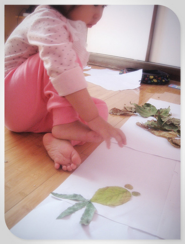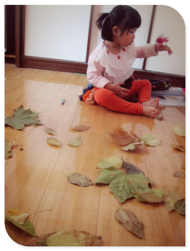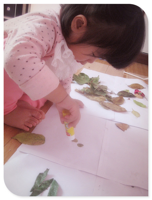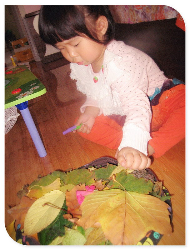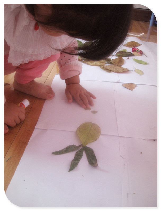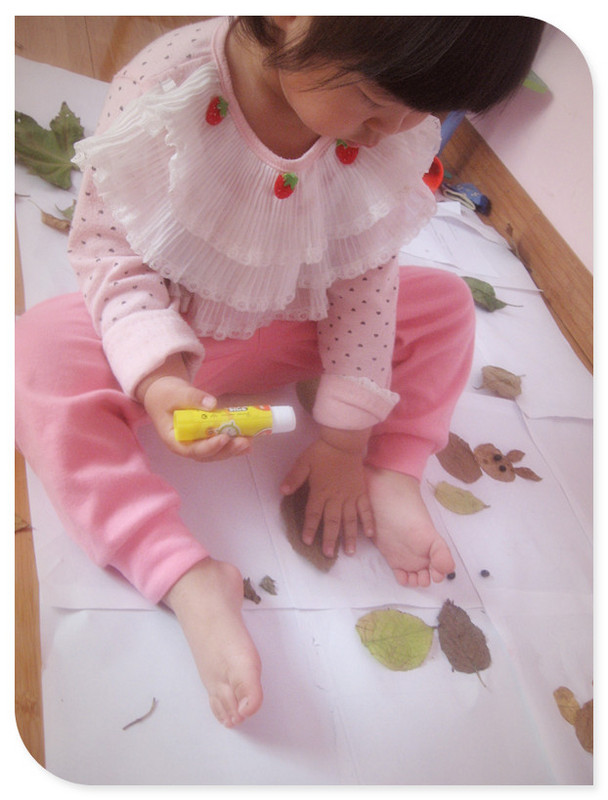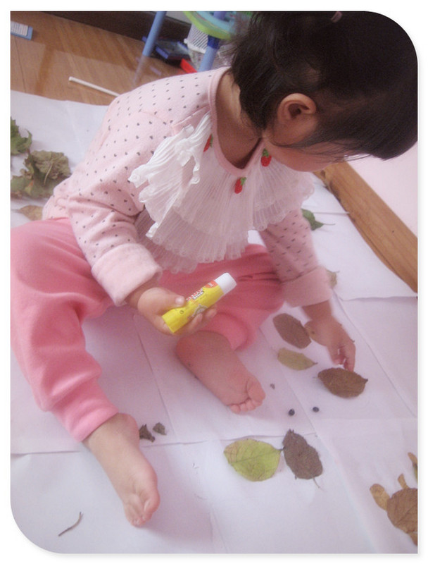 ![]() 现在天天都要和妞妞去公园,而且一玩就是半天的。她就像只关不住的小鸟,从一睁开眼睛吃过饭就开始追问着我,“妈妈几点了?” “妈妈,这个时间我们该干什么了呀?” “妈妈,你怎么不带我出去玩呢?” ……这丫头天天在我耳边不停的说,听的我耳朵都有些起老茧了~~ 吃过午饭,收拾完了,妞妞又要求妈妈去公园了。好吧,妞妞等着一上午了,赶紧背上我们的小书包,出发吧。一下车子,妞妞便自己跑进去了,她最喜欢沿着草地上的石阶向前走,若妈妈要扶她一下,她就会对妈妈说,“我都已经长大了,还用妈妈扶呀?” 好吧,我的小大人,你自己走吧~ 今天时不时会吹起阵小风,风吹起来,树叶哗哗作响,伴着秋风,一片片的树叶从枝头落下。轻飘飘的,一簇簇的飘下来,就像是彩色蝴蝶般慢慢飞落。它们落在树下的草地上,青草称着这树叶,安详而静美。不知道为什么,一看到这秋景,多少总是会那么一些动容和感伤。 妞妞看到草地上这么多的树叶,高兴的跑过去,蹲在地上拣起小树叶来。拣一个递给妈妈一个,这个是大的,那个是小的,全都让妈妈给拿好了。她把已经干枯的树叶也拣起来给我,我说这个不能要的,一捏就都碎了。妞妞听了,再看到这种干树叶,直接在小树里捏碎了~~ 她拣到一个深紫色的树叶,开心的拿着对妈妈说,“看,我拣到了一个紫薯树叶!” 呵呵,在妞妞眼里,好像什么都能跟吃打上交道哦。妞妞拣了好多的树叶啊,有银杏树叶,也有梧桐树叶,有大的,有小的,有绿的,有黄的,拣了满满的一小书包。她拣了,我便收着,妈妈心里打算着呢,这树叶回家,有用处! 看我和妞妞的收获,从书包里拿出来,居然有这么多呢。家里没有大纸,便用胶水把A4纸粘贴起来,这样,我和妞妞就可以在上面尽精的贴树叶画了!这个树叶贴画在书里和网上见过,早就计划着和妞妞收集落叶,然后粘贴成画,和她一起感受这秋天另一种风情。 飘飞一地的树叶~ ![]() ![]() ![]() ![]()