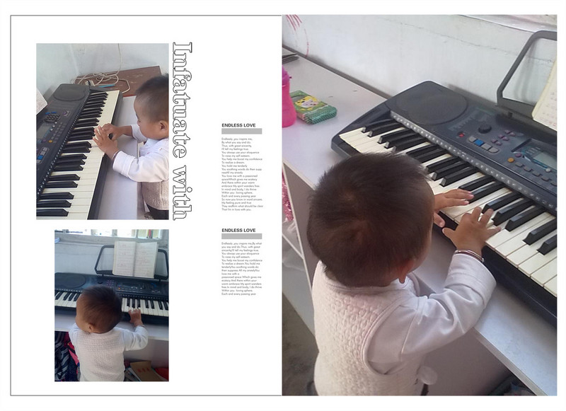 前一段时间去盼盼的老舅舅家的儿子结婚,我们去结婚婚礼去了,因为他们家的人太多,盼盼最怕生了,所以我们就去另一个老舅舅家了,刚到屋里一样东西注吸引住了盼盼,那就是钢琴,正好盼盼一个叔叔的对象在家里,盼盼才没有好意思立刻跑到钢琴前玩,而是一起在我跟前还让我抱着她,其实我是没有看到钢琴,所以我一直都不知道盼盼是想要什么,盼盼一个劲在我身上不老实,于是我就想让盼盼出去在院里子玩,可是盼盼就是不,还拽着我向钢琴跟前走,哦,我终于明白盼盼为什么不在我身上好好呆着了,原来有东西吸引住了盼盼啊!