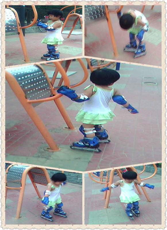 前天晚上,我因为提前回家,所以便去幼儿园接宝宝放学。到了那里后给母亲打了一个电话,让母亲不用再跑了,在俱乐部等我们就行了。母亲说那正好,拿轮滑直接去俱乐部让宝宝玩。