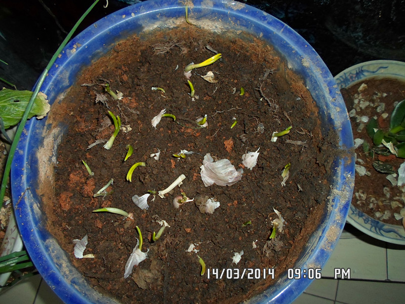 发芽的大蒜苗,估计过不了多久就会长长了