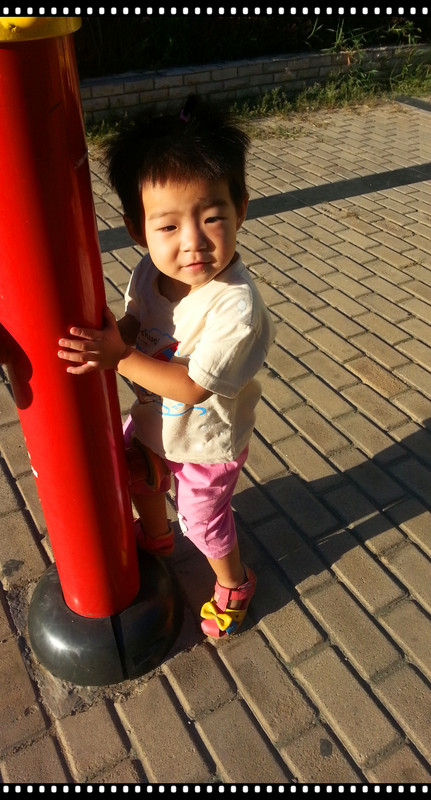 一一和这两个小朋友一起玩的时候,我就会格外注意,因为这俩孩子都比一一厉害呵呵。一个胖胖壮壮的,小孩子玩的时候没有轻重,随便一扒拉,一一都会受伤,女孩睿睿倒是不打人,但是抢东西,很活泼,跑的比较快,经常会撞到一一,反正最后受伤的肯定是一一。没办法,一一喜欢往俩人跟前凑。