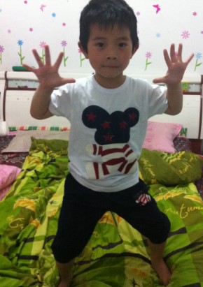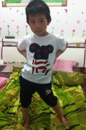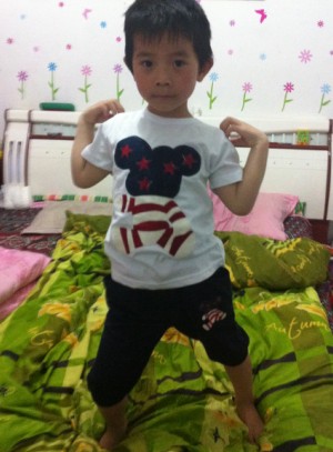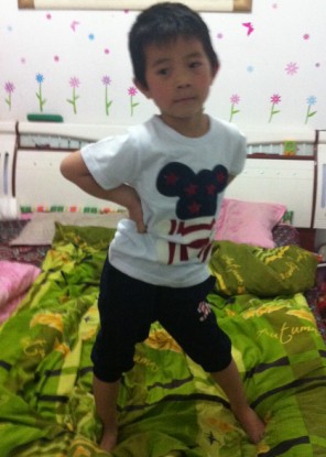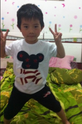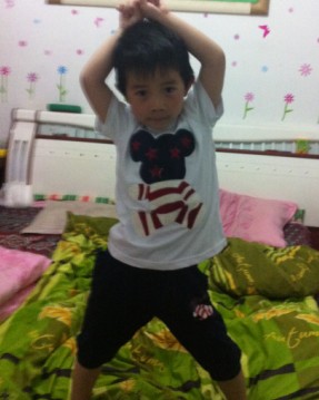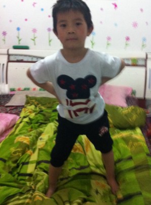 孩子摆出各种姿势来配合我给他照相。也要炫耀一下他的新衣服,还不断问我好看不好看。