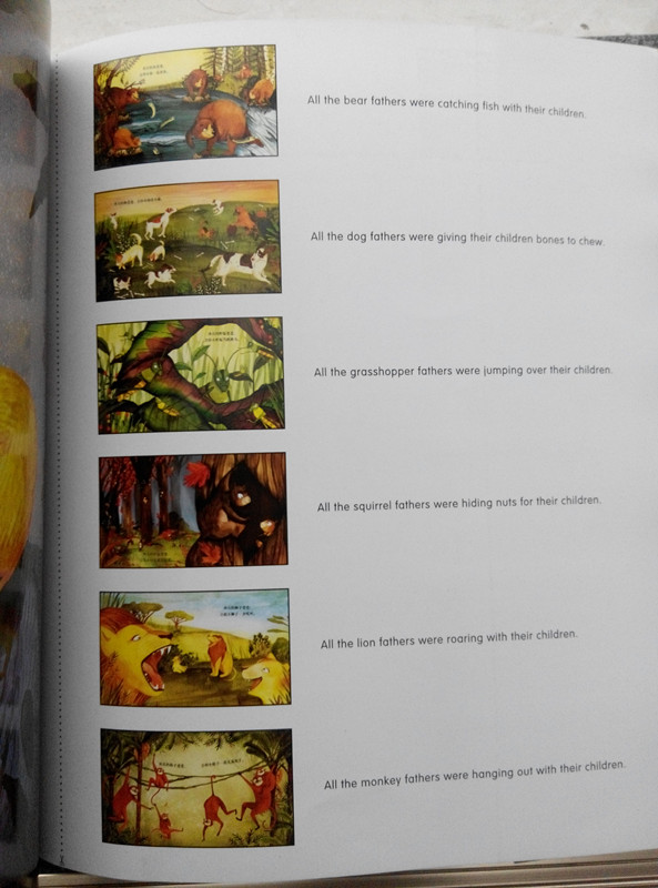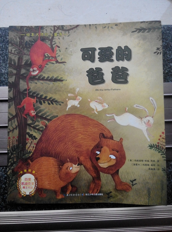 ![]() 在我的印象里,描绘爸爸的书籍真的是很少,市面上不多,家里好像也就三四本而已;而歌颂父爱的歌曲也不是很多,不像我们对于妈妈的爱那样可以信手拈来,张口就有。一直以来爸爸的爱仿佛就是隐忍的,不大表露出来的。我们都说父爱如山,可是如山的爱也可以化作涓涓细流,融化我们的心。今年春晚上那首父子对唱的歌不知道赚足了多少人的眼泪呢。 这次分享得到的这本《绘本大师的儿童诗》写的就是关于爸爸对孩子的爱。只不过它跟我们以往读的诗不同,跟我们平时看的绘本也不同,它是以诗的形式表现绘本的内容,所以这是一册儿童诗绘本,既是诗,也是绘本。在书的最后,还加了全部英文的对照,有兴趣的家长还可以对照着这个用英语给孩子读一读,体会一下不一样的感觉。在这一页上小皮球一眼就看到了上面的裁切线,还告诉我说这个是可以剪下来的。不过我还是喜欢放在最后这里,要是剪下来的话,说不定这一张纸就飘到哪里去了。 ![]() 这首儿童诗是我们熟悉的美国作家玛格丽特•怀兹•布朗写的,说起这个名字可能你不知道,但是我要说《晚安,月亮》和《逃家小兔》你是不是会发出“哦……”呢?最起码我跟小皮球说起的时候她是知道的,所以老师说在读绘本之前给孩子念一下作者的名字还是有一定道理的,遇到熟悉的名字无形中就接近了跟绘本的距离,好像是很久的朋友一样。在这册儿童诗里,每一个爸爸都爱着自己的宝宝,而且都带着自己的特色,有的绝对是妈妈做不到的啊:熊爸爸带着小熊抓鱼,狗爸爸给小狗骨头嚼,蚱蜢爸爸给小蚱蜢当跳跳马…… ![]() 跟爸爸相处的时候可能没有妈妈那么顺心,爸爸可能会吼一句,骂一声,但是孩子却又喜欢跟爸爸在一起。就像我们家的爸爸一样。老公平时工作很忙,有时候就是早上见一面,回家就要到半夜了。可是只要他有时间是一定会陪小皮球玩的,尽管有时候的结局并不完美,最后可能还会一拍两散。好像前几天,老公连着几天加班了,好不容易那天晚上有点空闲,想着说带小皮球出去玩,本来小家伙也挺乐意的,可是临出门了老公说了她一句,让她把东西摆好,结果她就不干了,就粘着正洗衣服的我,再也不跟爸爸出去了。好吧,这个好不容易有的机会白白浪费了。尽管这样,小皮球跟老公的关系还是非常好,平时有点啥好吃的都惦记着给爸爸留一点,吃不完的煎饼也说要留给爸爸,不让奶奶动。我想他们需要的只是时间,要再磨合一下,老公再注意一下方式方法,我这个当妈妈的可以省好多事哦 ![]() ![]() ![]() ![]()