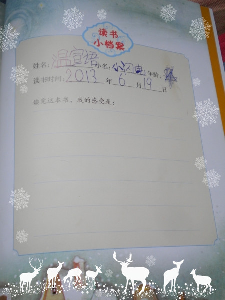 这个《读书小档案》,语儿只写了前半部分,后面还没写,等他写完了,再上图。