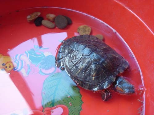 因为有过小时这两次的伤心经历,所以我都不爱好去养这些小动物。我怕和他们处久了,处出了感情,而它却死了或伤了,那心情真是很不好受。因此,我参加工作后,和同事买了乌龟养。一直都有说乌龟是最好养的。我们三个人一人一只巴西龟。这次我和其中一个同事由于出于对巴西龟的特殊爱护,那一年过完年回来上班,巴西龟干死了。哎......请教了另一个同事她是怎么养的。她告诉我们俩不要去太去管它就好了,饿一天两天的也无大碍。过了一阵子,我又去买回来了一只。遵照那个同事的话,不去太关注它,就这么一养就养了十年了。这十年,它跟着我从一个出租房到另一个出租房,从金华到上海,又回金华,再搬到现在的家。这十年,它也从原先拳头这般大长到了比两个巴掌还要大。相对于其他小动物,乌龟确实好养。偶尔龟粮不到位时,饿它两三天也没有什么大问题。