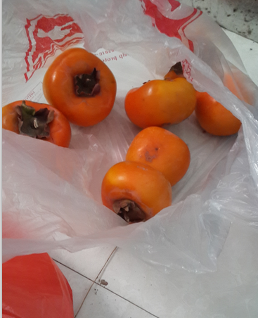 这不买完了山楂我准备走的了,这老板娘又说:家里有孩子拿几个脆柿子吧,可好吃了!就剩这么几个了!也是啊,摊位上就是那么十几个的样子了!脆柿子,我还真是第一次吃啊,孩子是一定不会吃的,那我得尝尝啊,她说了2块钱一斤,我想要买四五个的,结果不知不觉她就给我放了七八个啊,这不我回家后才发现,不知他什么时候搭上的柿子,竟然还有两个坏的!鄙视你