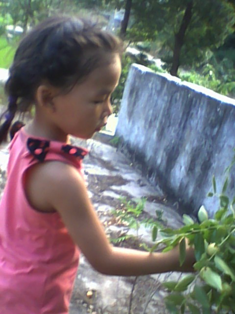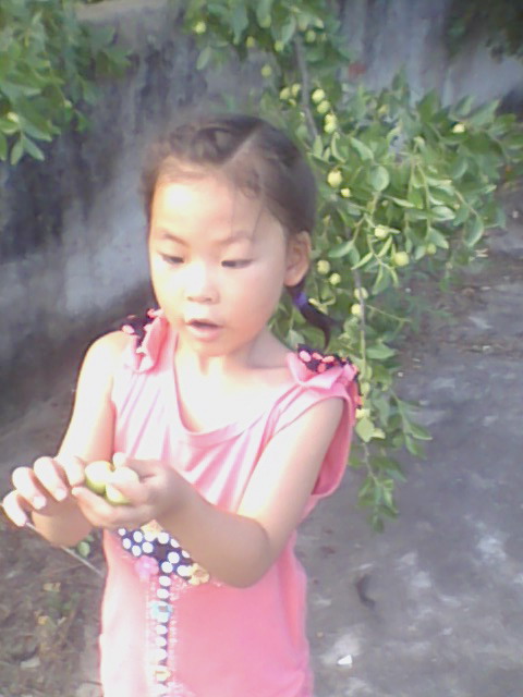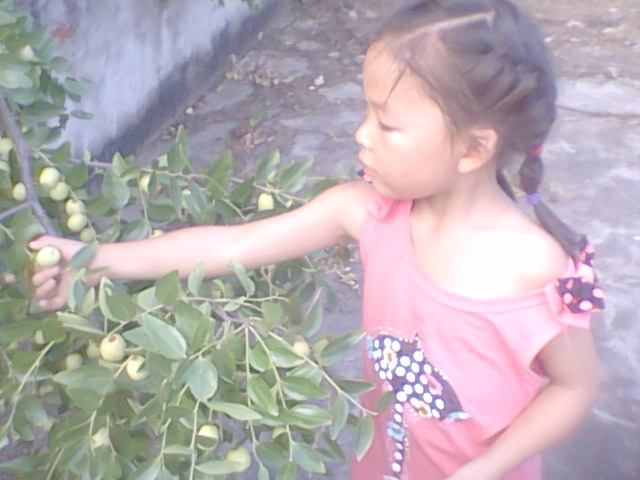 现在正是枣子成熟的季节,别看上去青青的,表皮只带一点红或一点黄,吃起来有些甜味了!长大的枣树很高,只能望而止渴。但一碰上刚长几年的矮小的树,我就会带着孩子去摘!村里人差不多家家都有,他们很高兴摘给你的,到了这个时候,要是谁家没有的话,好心的邻人会在自家的树上摘一些送过去的! 这是邻家的一棵树了,树在一个坡下的菜园里,正好长上来,我们到坡上的晒谷坪就可以摘下来了! “一枝红杏出墙来”,枣子从下面的菜园子里探出了头!熠能摘到了,可我一个劲的提醒熠不要挨太近,怕上面有虫子,可走近一看,叶绿绿的,果透子滑光光的,应该没虫! ![]() 这个枝头上挺多的,千颗万颗压枝低!看上去,还不够红不够打!不怕挑枝尖上的摘。 ![]() 对,就是挑这种大的,表皮不那么光,有点红中带黄,有点皮象裂开的那种摘。 ![]() ,妈妈,你看,我这几颗大不大啊! ![]() 没想,熠摘了一次就记着了那个地方,每天都要去摘好多回来,靠边的几个枝上都被她摘光了,还好,好心的邻居没说什么,也许是今天结得多,自己够吃就行了吧! 本作品未经作者许可不得转载,转载请征求作者意见。擅自转载使用,将保留追究其法律责任的权利! |
