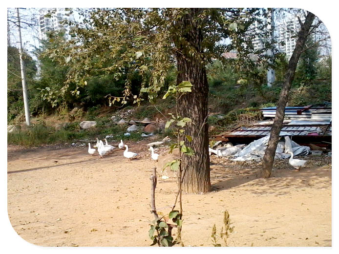 带着谦谦在大林子玩耍的时候居然在小山坡的后面发现了一群鹅,平时来玩的时候这个小山坡很少上来的,真是没想到山坡下面居然还养了一群鹅呢,这群鹅应该属于这里会所专用的。同时还有一个养鱼池也专供会所使用,食品都是天然环保的,只是来这里的会所吃饭是挺贵的,曾经打听过一次,一听价格还是放弃吧。