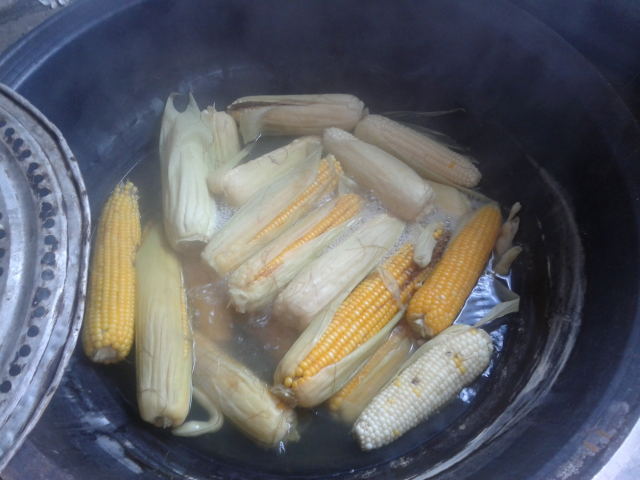 中午饭就是在家吃的,我们回来的时候,老妈已经煮上了老玉米,说实话,这老玉米一年来也经常的买着吃,可是吃来吃去还是自己家种的香甜,不放任何肥料,味道甘甜,找到了小时候的感觉,呵呵。往年老玉米也是在暑假的时候吃,记得小时候,总喜欢把玉米粒掰成一条一条的,好多玉米豆豆连在一起的那样,然后放在口袋里吃,小伙伴之间还比赛呢,看谁掰下来的最长,哈哈。