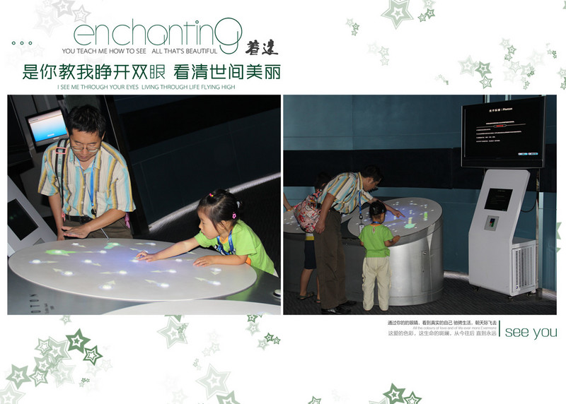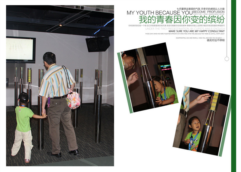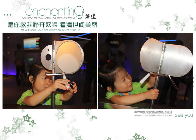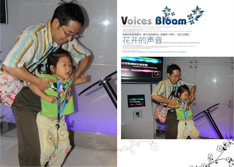 ![]() 我们先体验一下光的神奇!! 彩色的光,人的影子居然呈现出了三种颜色,够炫吧!! ![]() 看看这些装置,不好意思地说,俺都看不懂,反正都是跟光有关啦!关于物理,还是让闺女爸带着小家伙体验吧,妈妈当摄影师好啦! ![]() 篮球也跟光有关?戴上个眼罩类的东西,投篮就偏了。有时候亲眼见到的也不一定是真的呀!! 这个装置能让人的脸突然消失,我们体验了一把,还真是,突然闺女爸的脸就不见了,只剩一道白墙。不过要在两只眼睛视力相当的情况下哈。闺女爸就做不到! 这个叫“爸爸的鼻子”,上下错落着看,突然就只见爸爸的大鼻子了。也不知道闺女看到了没有。 这是个啥?转动圆盘,给你不一样的视觉效果。闺女够不着,爸爸抱起她来看! 马尾辫,拉起马尾,有一道影子让白纸中间多了个隔断。 ![]() 妈妈以前物理没学好,而且现在还是不学无术,反正就当稀奇看看,也不想探究原理了。等闺女大了她自己去探索吧!!希望闺女爸到时候能给闺女指点迷津。 看3D电影啦。这还是闺女第一次看电影呢,更别说是3D的了,小姑娘戴着大眼镜好玩哈!! 3D电影片段说的是海底世界的动物,那叫一个清晰震撼,仿佛伸手能摸得到一样!!小姑娘开眼界啦!! 上二楼吧,还有好多精彩的实验哦!! ![]() 抹上一点盐再杯子边摩擦,能听见声音哦。杯里的水量不同声音也会不同。 通过摩擦能让水盆里的水翻腾。本来平静的水面,通过闺女的摩擦泛起了阵阵涟漪。 ![]() 这里每天不同时段都有科学表演,今天我们就赶上了一个。还是个科普作家呢,给我们表演了半个小时吧。大小观众众多呀!! 现在开始参观声音的科学。声音不仅能听,还能看哦!通过拨弄琴弦,能看见声波的震动!! 听一听这个玻璃乐器里的声音,每个玻璃管里都能发出不同的声音哦! 通过打击乐器,看到声谱在屏幕上跳跃。 ![]() 声音的走势。顺着箭头走,就能听到奇迹。 这里每根柱子里都能发出不同的声音:有机场的声音、有工地上的声音、有飞机飞过的声音、有小桥流水的声音、有鸟的叫声...什么声音都有,只需要侧耳倾听! 1:00还有个科学实验,叫“会飞的种子”,通过叠纸,叠出不同的种子形状,然后抛向空中,模拟他们飞的样子。 闺女正在叠纸呢。 好啦,全部参观完毕,到出口打印照片喽。进来的时候我们三个人每人发了一个卡,每个卡都能免费拍张照片,还能打印带走留作纪念!全都是免费的哦!! 参观完索尼探梦,小姑娘还不肯回家,还要在朝阳公园里玩,无奈,妈妈只好拿出准备好的鸭舌头讨小家伙欢心了。吃上美味的鸭舌头,我们回家啦!!愉快的科学之旅结束喽!! 本作品未经作者许可不得转载,转载请征求作者意见。擅自转载使用,将保留追究其法律责任的权利! |