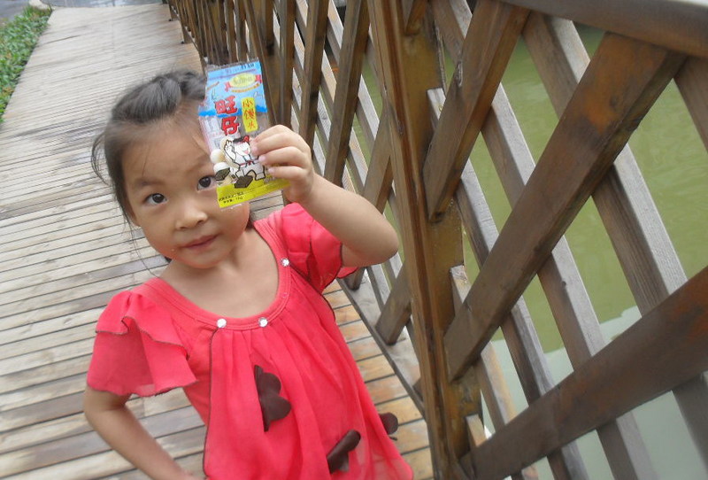 有好几次了,熠说要去喂鱼的,可前段一直雷雨天气,也去放弃了!昨天熠又提起这事,趁天气还不很热,就立即带她下楼了!