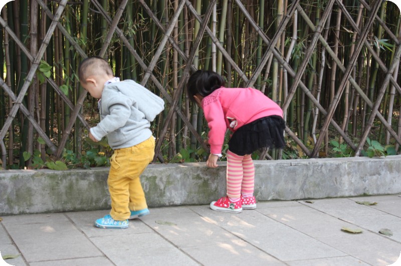 在这里,休息吃东西,两个小家伙捡树叶,玩的很happy