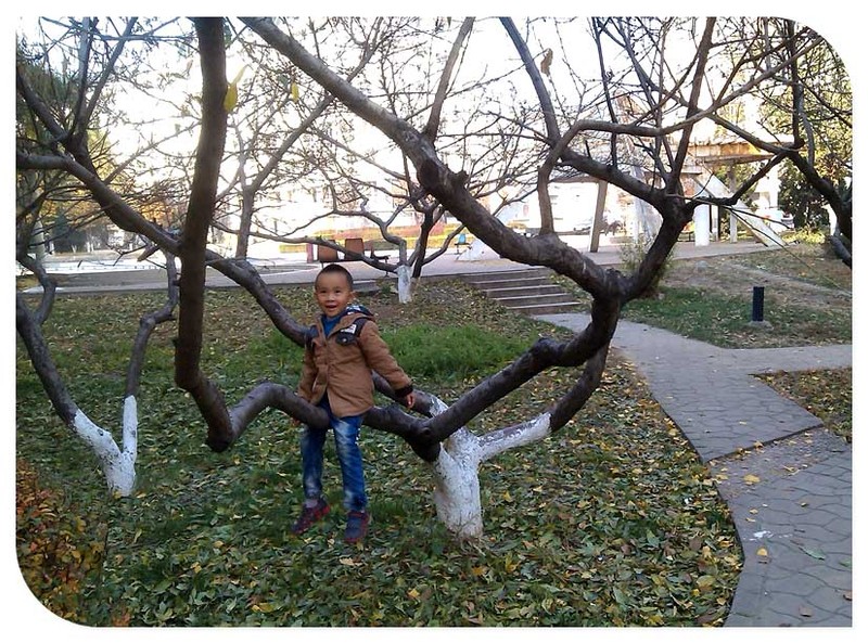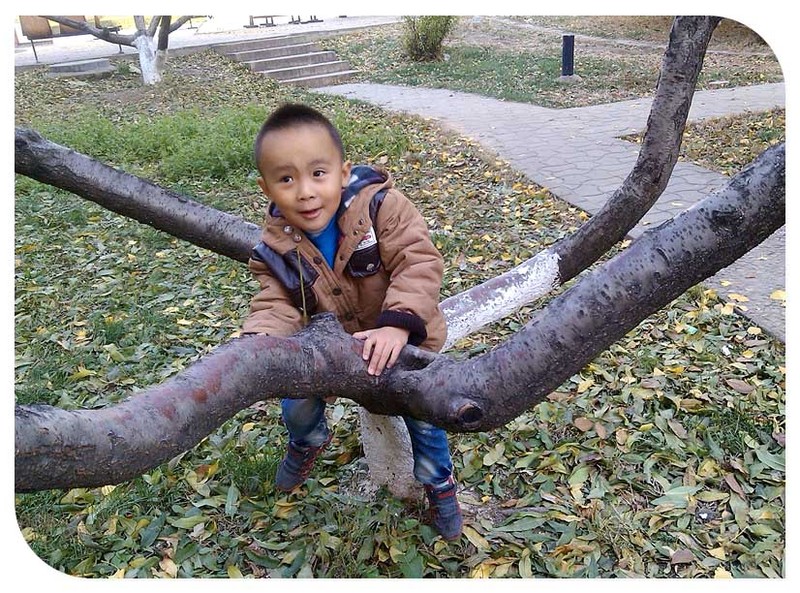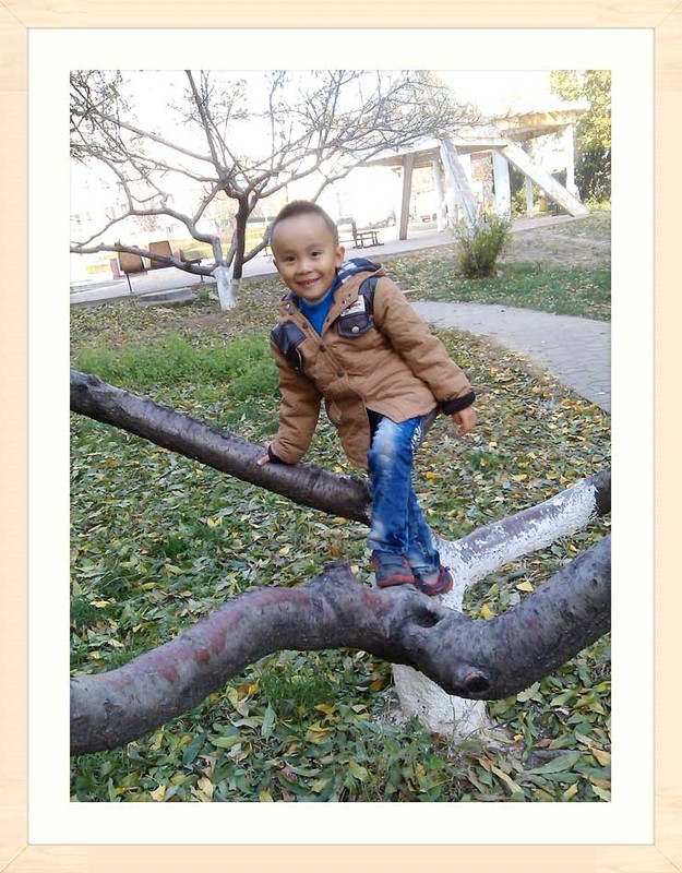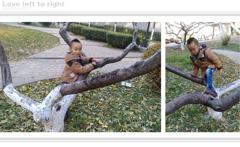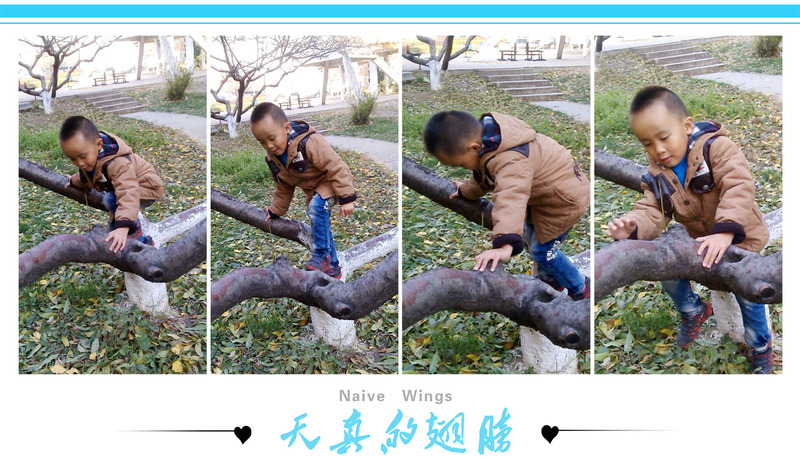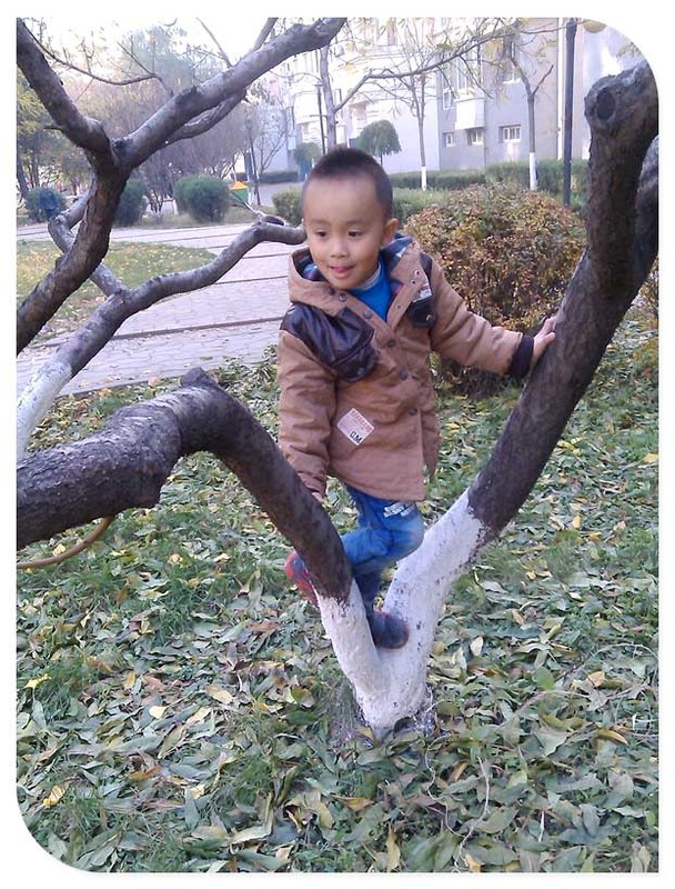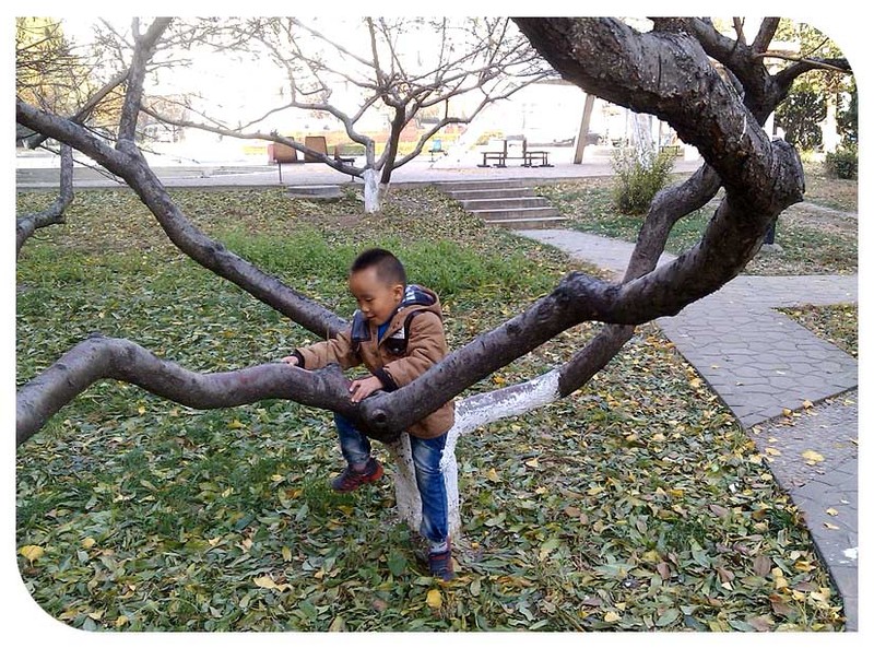 大概是男孩子的缘故吧,咱家谦咋就那么喜欢登高上树之类的活动内容呢!平日里每天早上去幼儿园的路上都会经过花坛的,那是小家伙的必经之路,不在地面上走,非让妈妈给抱到高高的上面去走,妈妈还得叮嘱小家伙不要走快,真担心掉下来呢!爬树也是谦喜欢的内容呢,好像妈妈那个年代的孩子们上树是常事,无论男孩、女孩的都有爬树的经历吧,妈妈还记得有一次从树上掉下来摔坏手的经历呢,但是现在的孩子好像爬树的经历并不多呢,科技越发达,时代越进步,孩子单纯的快乐就越少了...... 这次带小家伙出去玩的时候经过一个小区,从中穿过的时候小家伙就发现这棵树了,说树品种不知道这是一颗什么树,果树或是其他的,说树的高度不高,挺矮的,让孩子爬上去是完全可以的。总之远远看过去造型很漂亮的,而且这颗树有很多的分叉,每一根分出来的树枝又都有粗度,至少可以承受谦这样的孩子是不成问题的。这可满足了谦喜欢爬树又可以实现的想法了。小家伙跑了过去,开始往上爬,坐在树上的宝贝那叫一个美啊,乐呵呵的表情一览无余。谦在一根树杈上坐一会之后就换换另外一根树杈在坐坐,坐在树上的感觉甚好啊,有时坐,有时站,宝贝玩的开心!妈妈在旁边注视着宝贝的一举一动,这是4岁孩子的喜爱,这是4岁孩子的快乐,越小这快乐就越容易满足,试想一下如果不是因为孩子的话妈妈会对这树看一眼吗?陪着孩子长大让自已发现了身边更多的快乐和美好......