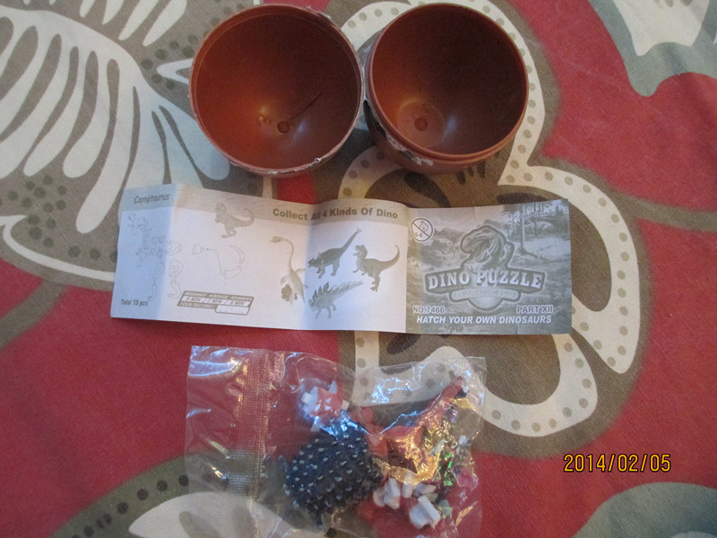 ![]() 这是个恐龙蛋,和家里已有的小恐龙蛋不同的是,它不是能泡水的恐龙,而是一套恐龙拼图。费劲地将蛋壳打开,里面掉出来一堆零散的恐龙配件,还有一张图纸。 ![]() ![]() 恐龙拼图敬仪还没玩过,这下可以好好琢磨琢磨了。敬仪向来对拼图、积木这种拼装类的玩具特别感兴趣,看到这一堆零散的部件,敬仪忙不迭就拼了起来。 ![]() 不一会儿,敬仪就将恐龙的雏形拼了出来,就剩下四肢了。 ![]() 敬仪鼓捣了好一会儿,还是没能将四肢装进去,找妈妈帮忙。妈妈拿起敬仪拼好的恐龙身体,将剩下的恐龙四肢往里插,怎么插都不对,接头处总是合不上去。努力了一阵子,妈妈放弃了。让敬仪求助于舅舅。舅舅来试了试,说敬仪拼装的顺序错了。应该先将四肢拼装好,再插进恐龙的身体里去,不能先拼出身体再插四肢。怪不得呢,原来还有这么个顺序啊! 舅舅三下两下就将恐龙整个身体都拼好了,嘿嘿。 ![]() 拿着拼好的恐龙,敬仪开心极了。还努力将恐龙的身体拆成小部分往恐龙蛋里塞,妈妈让她把恐龙的四肢拆下来,看自己会不会拼,她还不肯呢,生怕破坏了这只恐龙的完整。一只小小的恐龙蛋,带给宝贝无限乐趣啊!