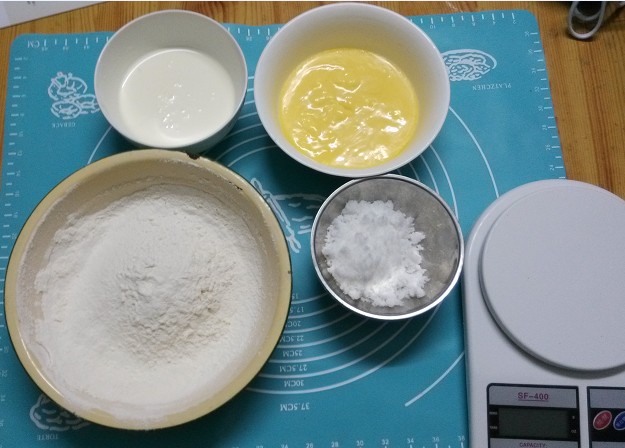 低筋面粉  180g  (和书上学的,没有买专门的低筋面粉,是用普通面粉和玉米淀粉以4:1的比例自己配的)