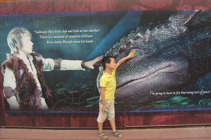 时间:2014年8月2日 地点:北京鸟巢附近的白色房子 还在北京的时候,看到地带宝妈晒了去看《驯龙高手》live秀的帖子,非常心动,当时也突然想到了去鸟巢看夜景的时候附近总有像电影的声音,原来是在放这部影片呢。后来立马就上网查了一下,发票门票有点小贵,最便宜的还要180元一张,而且小朋友也要票,我们还没看过这么贵的电影呢。所以当时还是犹豫了几天,后来想着难得来北京一次,而且还是大宝最喜欢的恐龙,我还特意把地带宝妈的帖子给大宝看了一下,小家伙看了就吵着说要去了。 ![]() 本来我们计划是8月1日去的,看广告是说那天杨阳洋父子也会来现场,结果那天因为临时有事没去成,所以就改成了第二天,计划看晚上7点半的,因为要坐公交转地铁,所以我们也没来得及吃晚饭,大概5点左右就早早地出发了。小家伙知道是去看恐龙,一路上兴奋得不得了,叽叽喳喳地说个不停。 ![]() 下了地铁沿着有喷泉的美食街就往目的地出发了,远远地就能看到鸟巢附近的白色房子。大宝一路上就不停地摆各种POSS,说自己像恐龙一样飞呀跳啊,难得让我抓拍到了几张。 ![]() 这个时候宝贝后面的喷泉就已经开始喷了,只是这时候天还很亮,没有灯光,到了夜晚加上灯光的衬托就更漂亮了。 ![]() 宝贝身后的高高的白色房子就是我们要去的地方。据说还是重金打造的一部live秀呢,光看这座房子就知道了。 ![]() 我们先去买了门票,180一张的门票已经没有了,买的280元一张的,不过还好是一大一小的票,所以买一张票就够了,比起买两张180的还是便宜一点点啊。 买完了票时间还早,我们就先在互动体验园里玩了起来,里面摆放了各种恐龙,大宝看了喜欢得不得了,这个摸摸那个看看,让我拍照的表情都比以往丰富了。如果不看电影,去体验园里玩玩也是非常不错的,里面有很多小朋友在那儿玩呢。 ![]() ![]() ![]() ![]() ![]() ![]() ![]() 小家伙在里面玩得不亦乐乎,还时不时地问我,时间到了没有啊。差不多离开播还有15分钟左右,我们就往剧场里走了,走到这幅海报面前,小家伙也学着小嗝嗝的样子闭着眼睛摸无牙恐龙。 ![]() 到了剧场,发现人不太多,空位一大把,我们选了个视线比较好的地方坐了下来,小家伙先玩起了在门口买的恐龙。 ![]() 去看这个live秀时,我们还没有看过电影的驯龙高手,而这次演出的真人实景live秀《驯龙高手》是根据同名电影制作,在2010年,该部电影在北美的票房曾经超过了“功夫熊猫”,而这次观看的现场版真人实景live秀更是震撼,视觉效果非常棒。我和大宝是第一次体验这种实景演出。据说是全球演史上最大量运用电子动画技术,13只仿真恐龙让人分不出真假,最大的喷火飞龙重达3—5吨,羽翼最长展开幅可达14米,还能利用空中轨道悬空飞翔。 ![]() 开始还担心大宝看到这样的场面会害怕,结果人家是看得眼睛都不眨一下。不过坐在我们后排有位小女孩估计是害怕,一直都蒙着眼睛在哭,最后父母没办法只好带着孩子离开了。看这样的实景秀还是比较适合大一点的孩子。 大宝看完以后回来的路上还一直在回味呢,小家伙非常喜欢名叫无牙的恐龙,受伤的时候是担心的表情,当无牙伤好了飞起来的时候小家伙高兴得跳起来了,宝贝还非常羡慕小嗝嗝,因为他不仅是无牙的好朋友,还能随时骑着无牙在天空飞翔。 ![]() ![]() ![]() ![]()