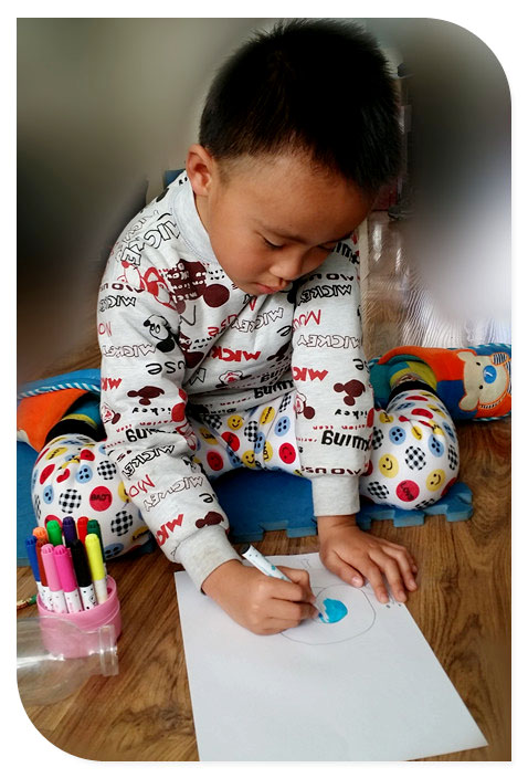 小家伙很喜欢画画的,现将宝贝最近有意思的画记录一下。这是周末的中午,吃过午饭后小家伙又来了画画的兴致了,谦说要画蜗牛,妈妈忙碌自己的事情,小家伙投入到画画的乐趣中。