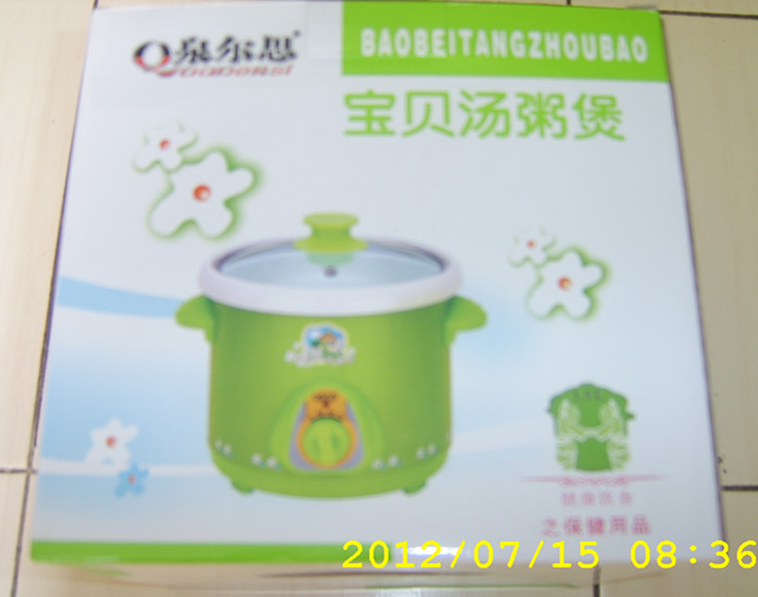 从宝宝四个月的时候就慢慢的喂宝宝吃辅食了,这个电炖锅又开始有用武之地了。几乎每天都有用到它。之前我炖完东西的时候,一般都会等冷却了才会放水进去里面洗,因为里面的内胆是陶瓷的,如果刚刚煮好后,那个内胆很热,就马上放冷水进去的话,很容易裂开。因此在洗锅的时候我都会注意到。后来大姐来帮忙看宝宝,忘记告诉大姐也要这样做,大姐把热汤倒出来之后,就马上往内胆里倒入冷水,一开始我没发现,后来有一次洗内胆的时候发现有点小小裂痕,我就跟大姐说汤煲好后,不能马上往内胆倒冷水,不然的话导致内胆有裂痕。后来就渐渐的会漏水了,再也不能用了。