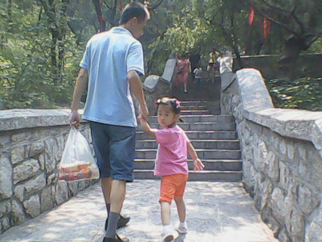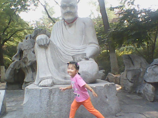 也不知道宝贝那里来的劲儿,就是喜欢爬山,爬不够,一直吵着要爬山爬山的,因为去青岛海边的计划取消了,所以老公就决定带着我们去爬山,到济南去爬千佛山,千佛山是济南的三大旅游胜地之一,大明湖我们去年的时候去的,现在在爬千佛山,就趵突泉没去了,不过宝贝现在只是对爬山感兴趣,别的先放一放吧。我们就爬山。 ![]() 我们的提议被邻居接纳了,要和我们一起去,她呢,正好去走亲戚,去看孩子的老姑,她的孩子还小,不到一岁,不太适合爬山,他们两口子,带着孩子就到了她的亲戚家里,我们直接去爬山。 早上六点多点儿开始走的,八点多到的济南,先去送他们到亲戚家,然后我们在去爬山,在山脚下的时候是九点多,买票,还需要排队,是周二,但是去爬山的人还不少呢,不过排的队不长。 开始爬山喽,千佛山,顾名思义肯定会有很多的佛像喽,一进门就看到了,台阶的两边都是佛像,宝贝就要我给她拍照。 很开心,精神十足,就是要去爬山,太开心了,可是妈妈还担心宝贝会爬不上去,因为整座山高二百八十多米,但是它不是直路,还有很多的拐弯,都是台阶,怕宝贝会嫌累,上不去。 爬了一段时间以后,有个很大的卧佛,前面有很旺的香火,有很多人跪拜。 爬山的途中,宝贝还是精神十足,问她累不累,人家每次的回答都是不累, 我在台阶上走,他们爷俩儿走小路,我们比赛看谁先到上面,呵呵,结果表明,虽然小路很近,但是小路不好走,所以我们差不多同时到上面的。 到了半山腰了,在历山院那里拍的照片,这里有很多的建筑的,进去都是要收费的,我们都没进,因为我们的目的就是爬山,,O(∩_∩)O~ 往远处眺望,,,宝贝在指下面的建筑物呢,说我们爬的好高,,, 休息了一会儿,继续往上爬,这是到了山顶了,天气很热,给宝贝买了根冰棍儿,是兵工厂的,芒果味儿的,平时在下面好像卖一块五角的,在上面要四元一支,其实也不贵,光那么高的山上来吧,好费劲儿的。 让宝贝拍照,可是她只对雪糕感兴趣,给雪糕拍个照吧,,,这是在千佛山的最高处了, 上面有很多的红绸子还有锁,都是和姻缘有关的, 一个大大的缘字,可在两颗红心中间。我记得是心连心的,怎么看照片像是一颗心呢,,, ![]() 到了最山顶了玩儿了一会儿,就下去了,是做缆车下去的,怕宝贝会腿疼。