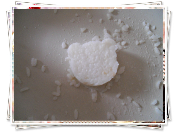 看看宝宝的制作成果,一个巧虎饭团。这个饭团宝宝一开始不知道怎么往出拿,后来我们告诉宝宝一只手向下,一只手向上提就会弄出来了。看,这就是宝宝自己弄出来的。其他的效果不太好,就免于观看了。
