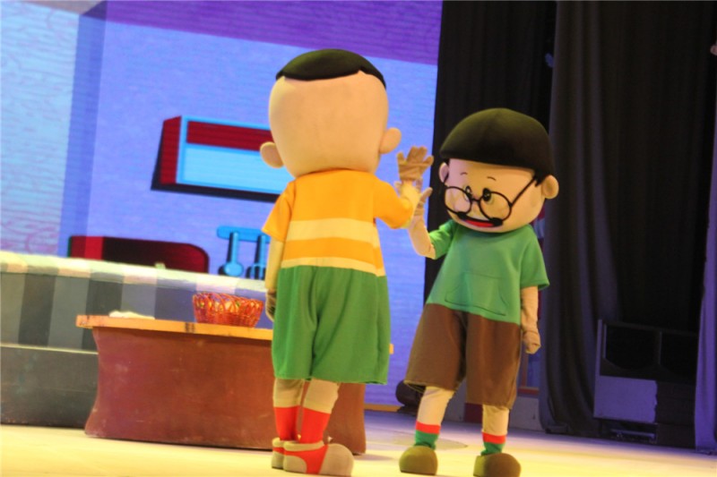 亮点一: 木偶剧院的新大头儿子,是央视授权版的。所以,无论是大头儿子、小头爸爸、围裙妈妈还是大头儿子的好朋友地瓜、棉花糖的形象,都和动画片里面的人物形象非常接近。别说孩子,大人看起来都很亲切熟悉。