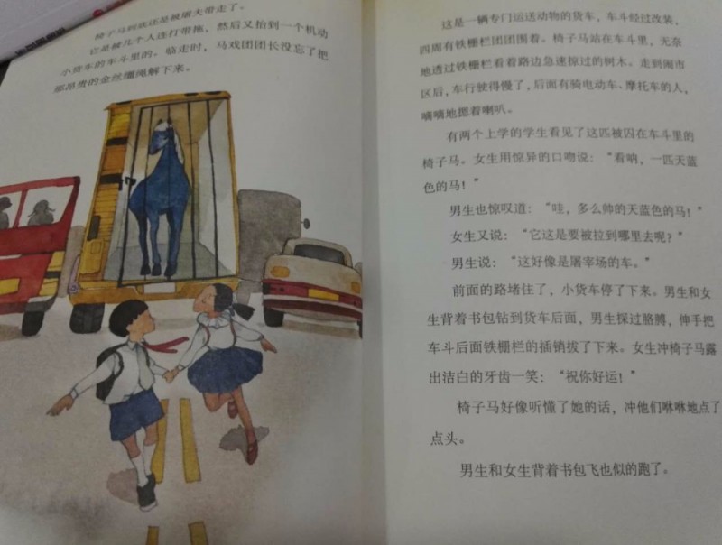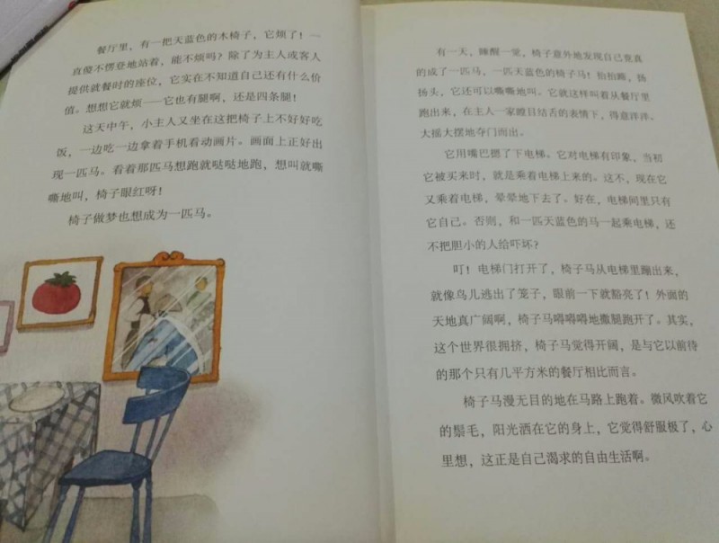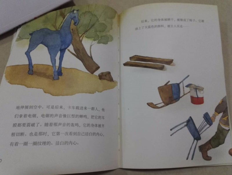每个人的生命都不应该被束缚,应该掌握自己的命运,让生命自由奔跑。一把蓝色椅子做梦都想成为一匹马,有一天它梦想成真了,变成了一匹蓝色的马。它自由奔跑,微风吹拂,蓝色的马舒服极了,这正是它渴求的自由生活。它跑过草坪,看到绿油油的草儿忍不住停下了大快朵颐,它吃过的地方,变成了一幅幅美丽的图案,大家都认识了这匹蓝色的马,都想得到它。马戏团抓住了,把它变成了明星马。蓝色马开始觉得这种生活也还是不错的,但时间长了,它又想起了它自由的梦想,所以它逃跑了,逃跑路上危险从从,被屠夫抓住,因为两个可爱孩子的帮助又一次恢复了自由。它来到了森林发现这里好熟悉啊,感觉它来过这里,它终于想起了了,它原来是一棵树被打磨做成了一把蓝色的椅子,它最后又恢复成了一把蓝色的椅子永远留在了曾经养育它的森林里,当夜深人静时,它就会变成一片蓝色的马,自由奔跑。